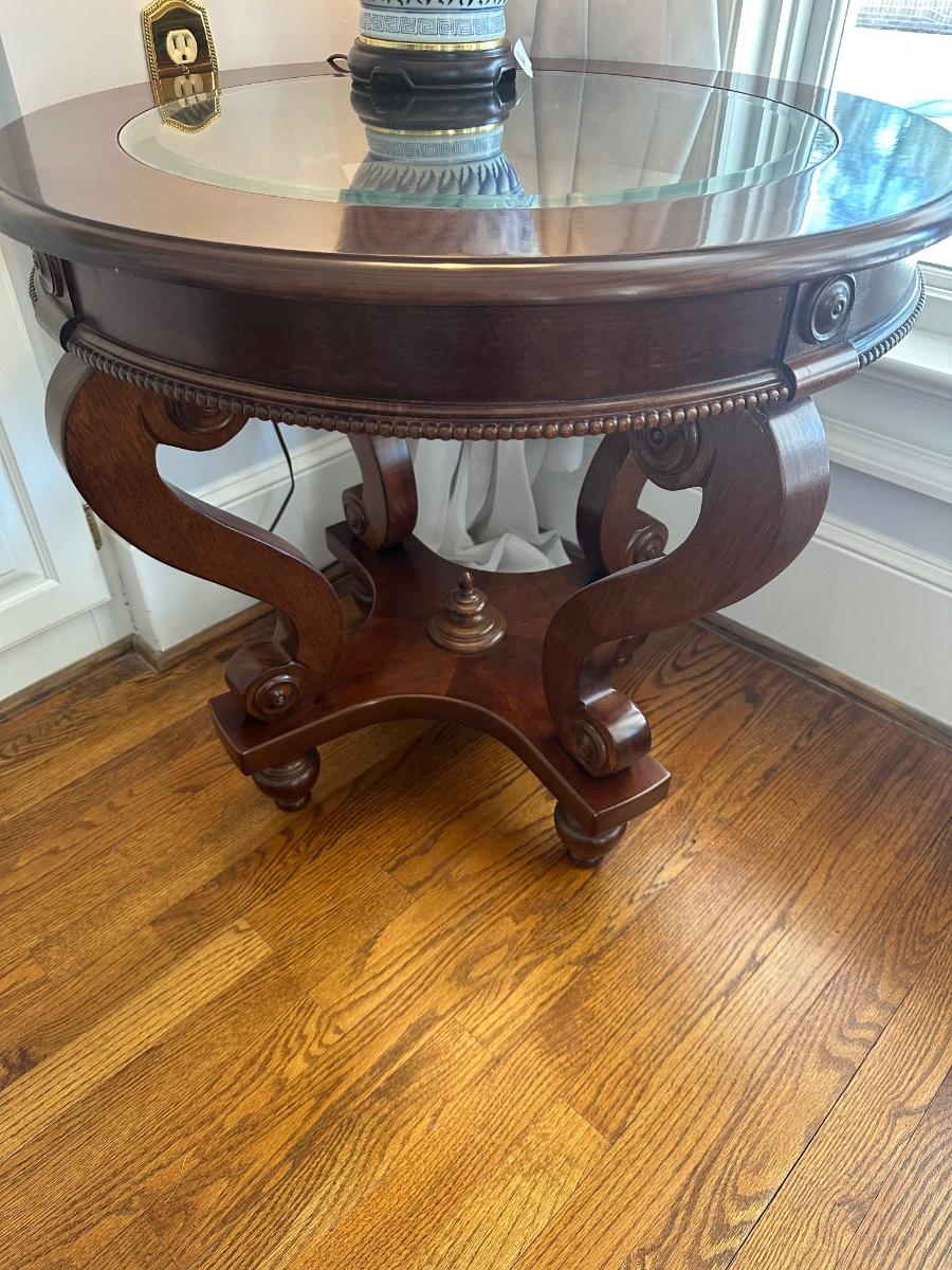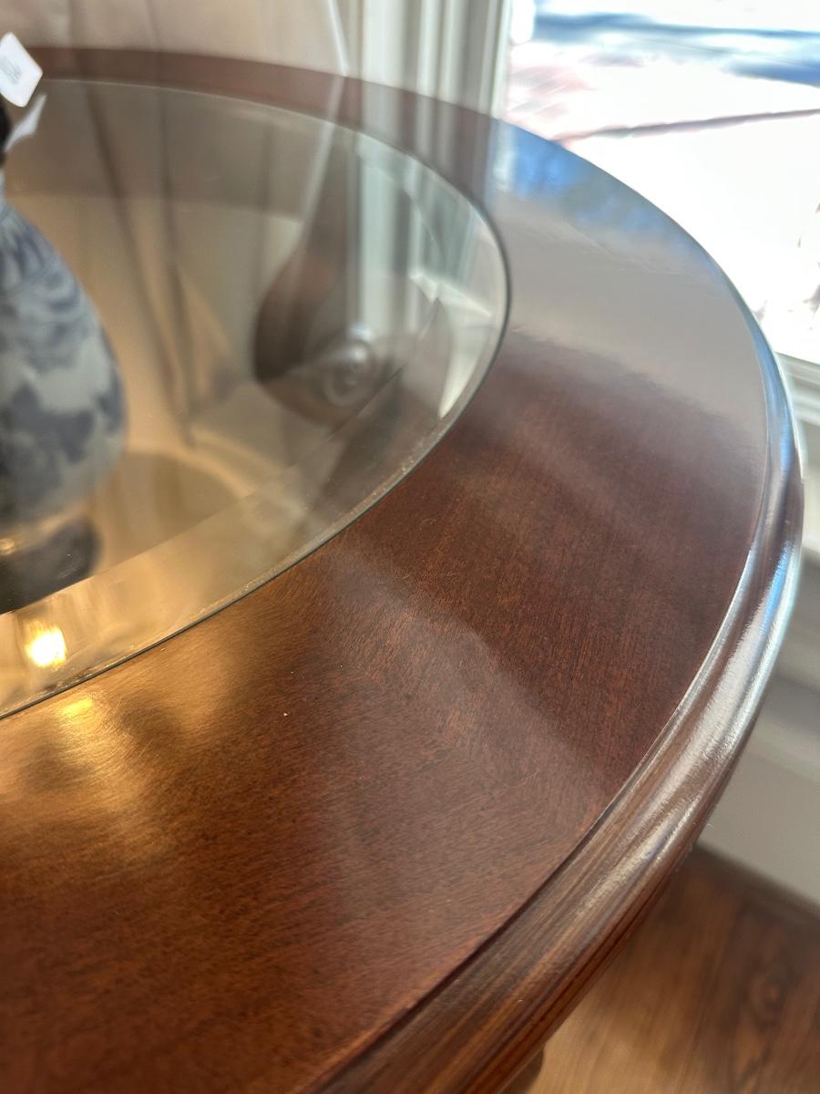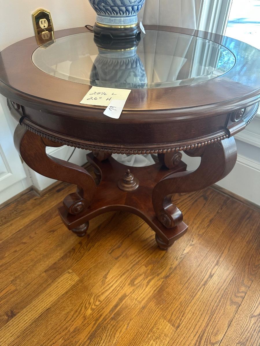 GLASS TOP ROUND ACCENT TABLE 28X26
