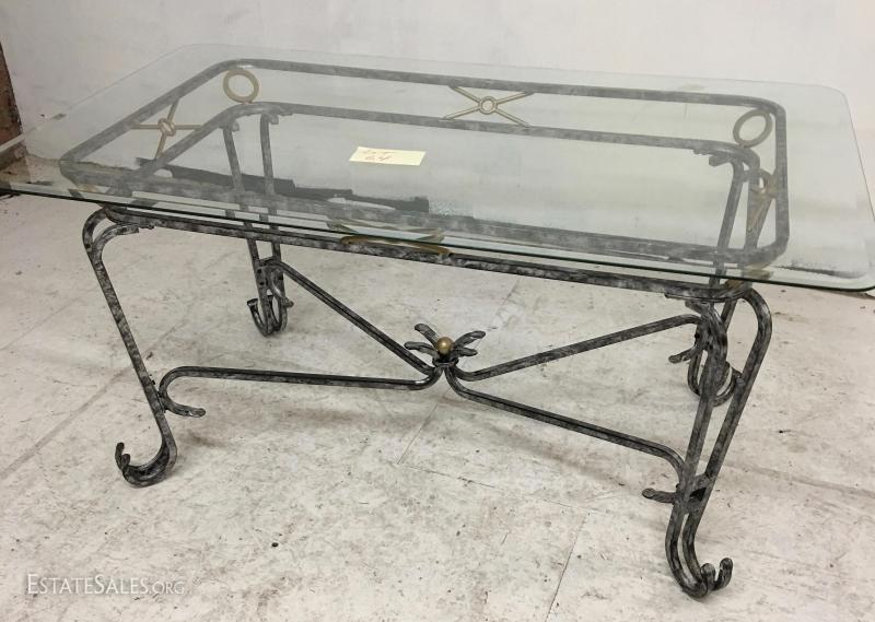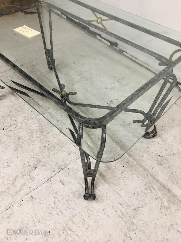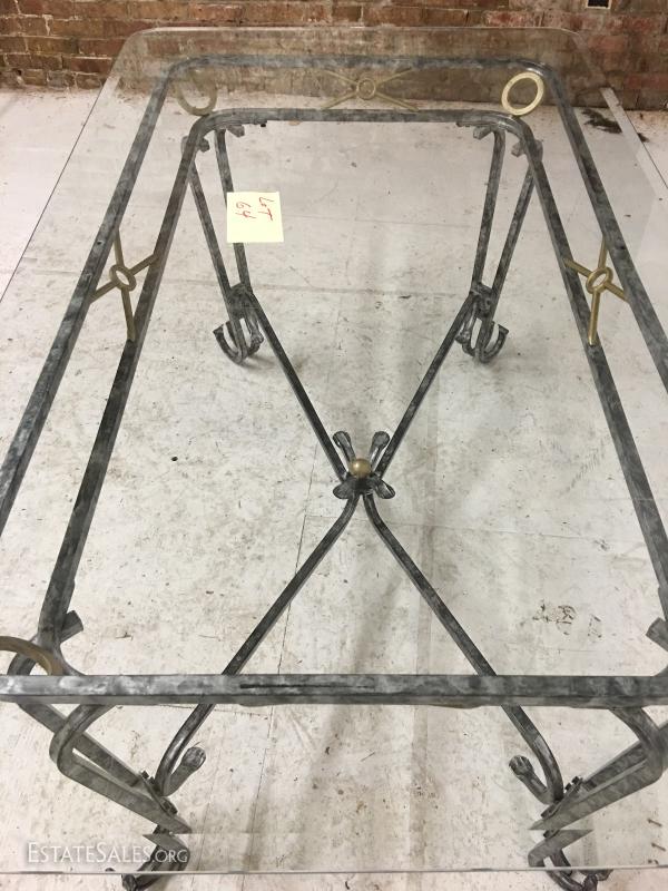 Glass top wrought iron dinning table 60" by 36". Lot#64
