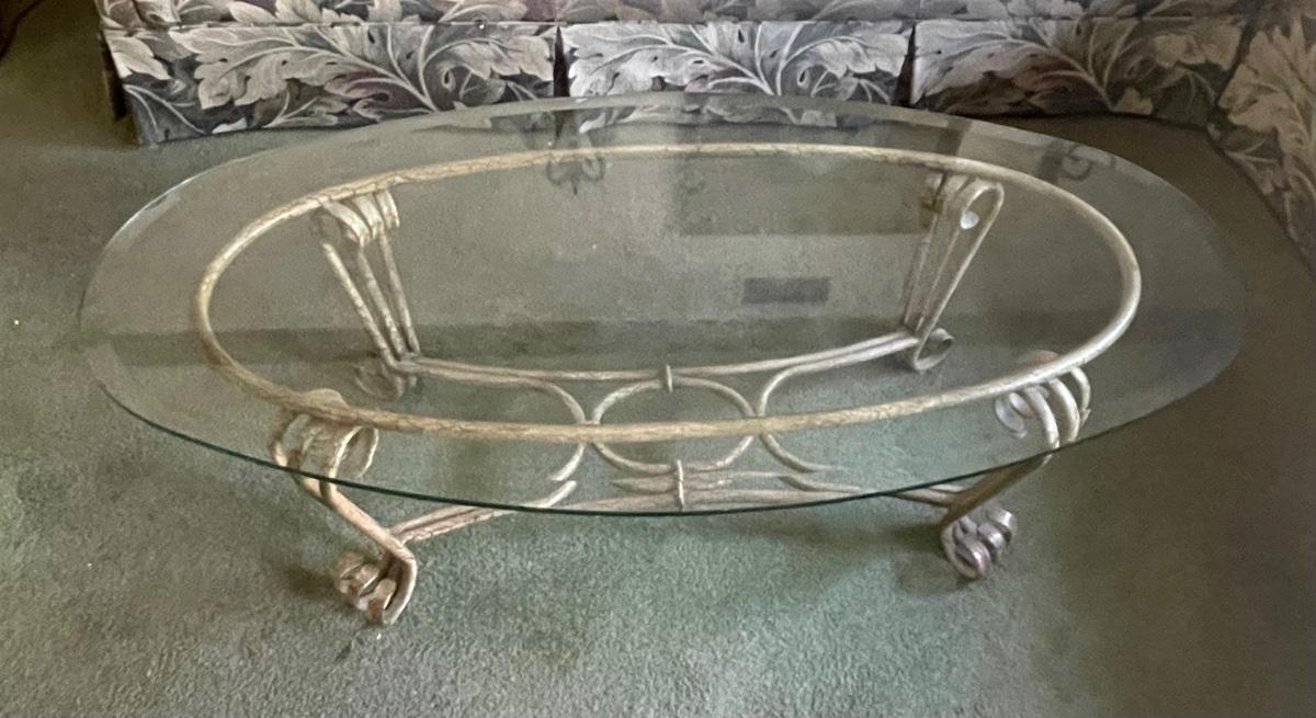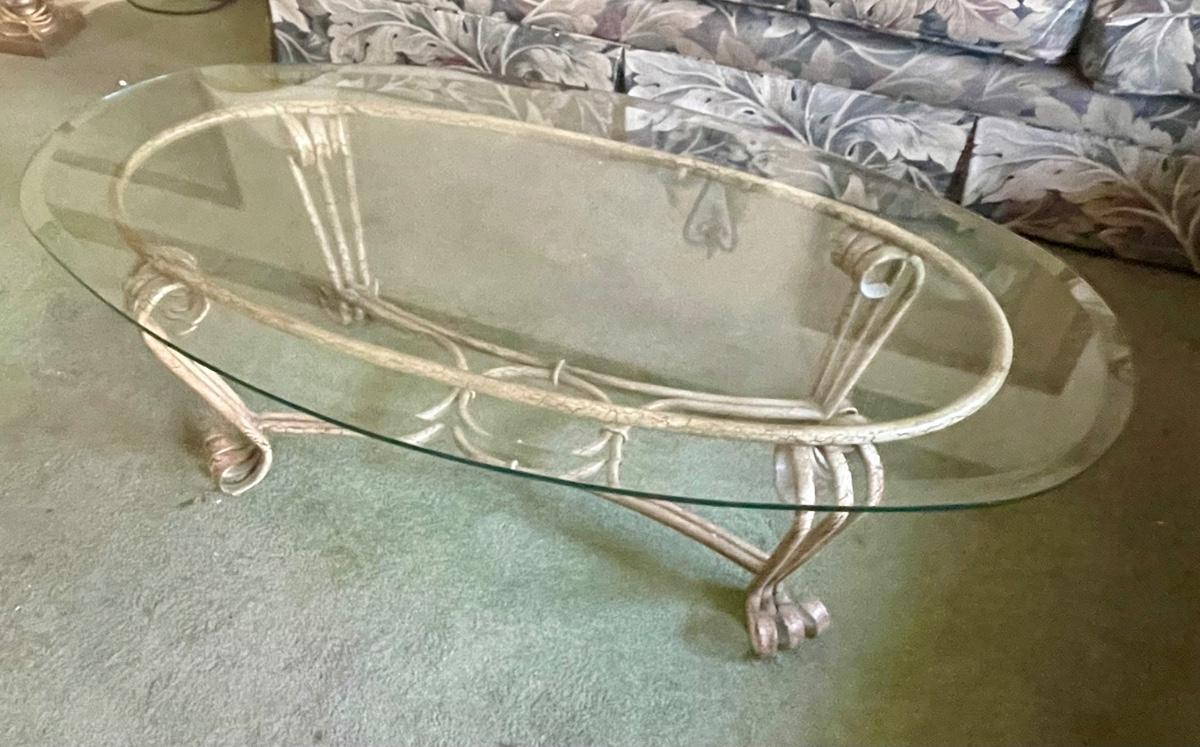 Glass Topped Oval Coffee table Metal frame & Legs