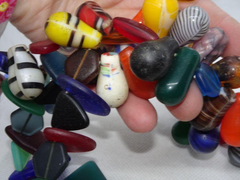 Glass & Trade Beaded Necklace, Tribal - Brilliant Colors