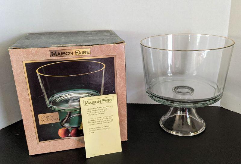 Lot # 46 -Glass Trifle Bowl with 22K gold rim-NIB new in box