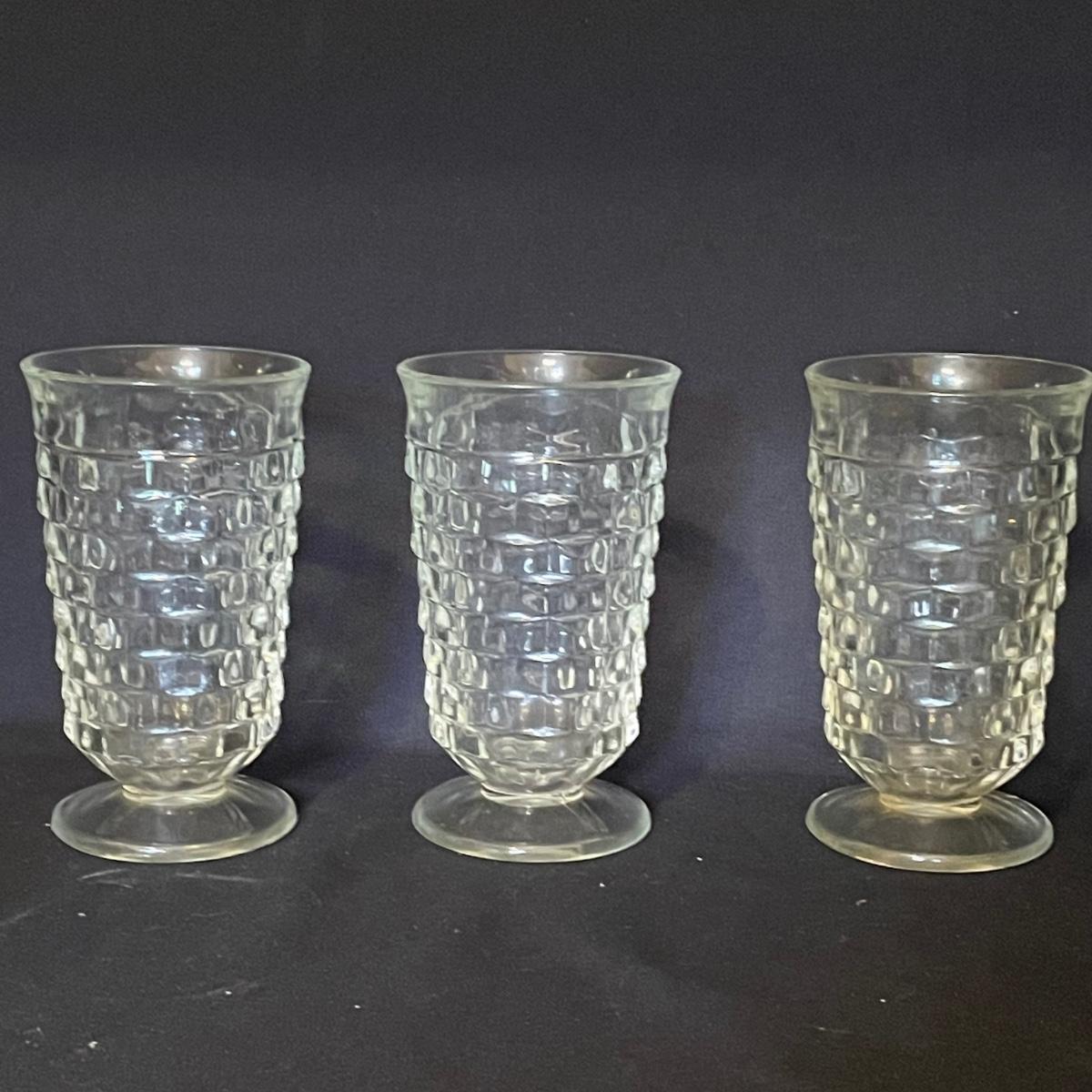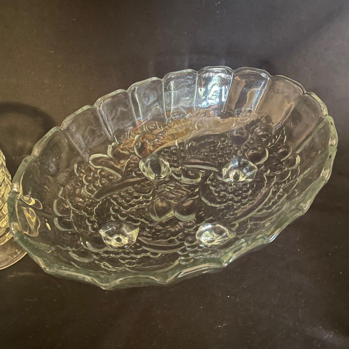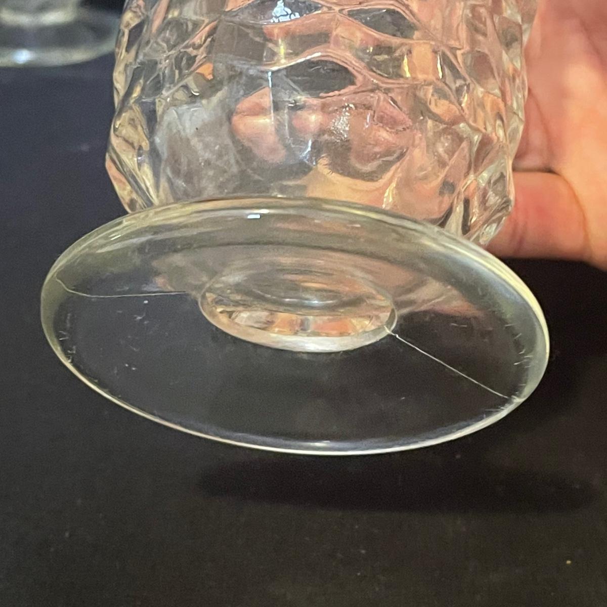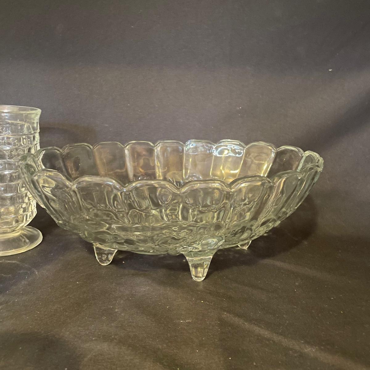 Stylish yet durable, this large glass lot offers plenty of options for elegant entertaining. 6 each of the stemmed glasses and the water glasses, plus 3 larger glasses and two smaller ones. Lot also includes salt and pepper shakers, a pitcher, lidded bowl and an oval footed dish that measures 9” x 12”.