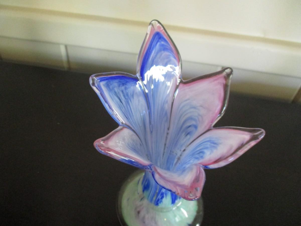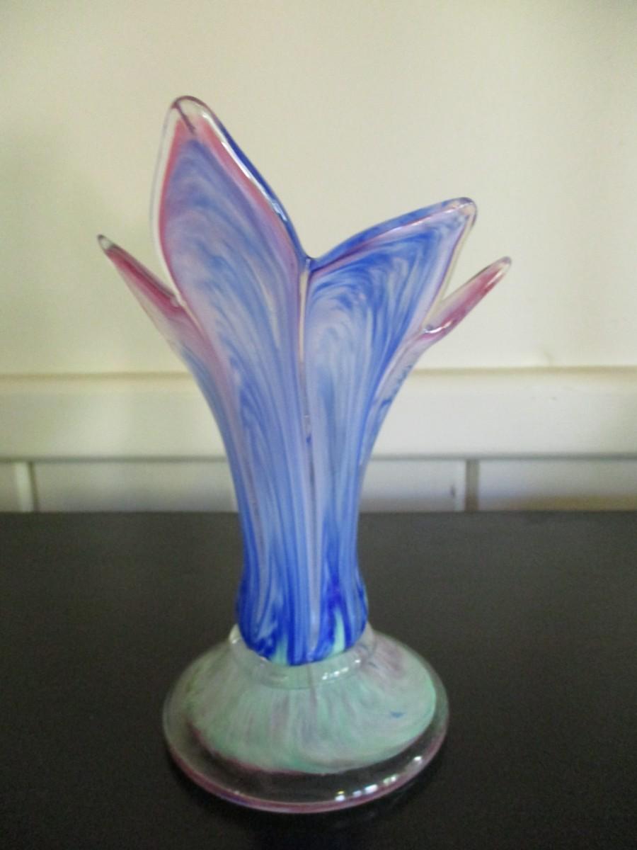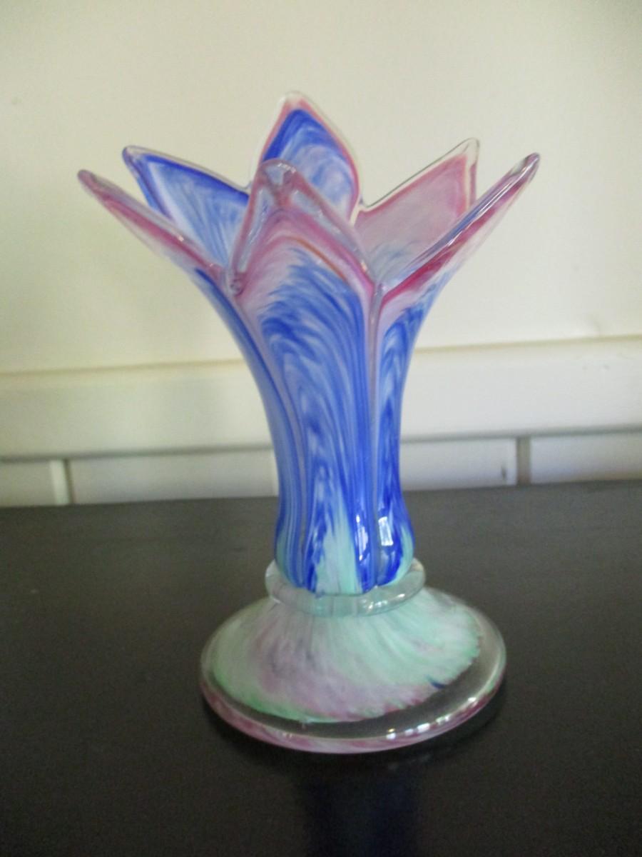 Swirl Marbleized Art Glass Flower Petal Vase - A