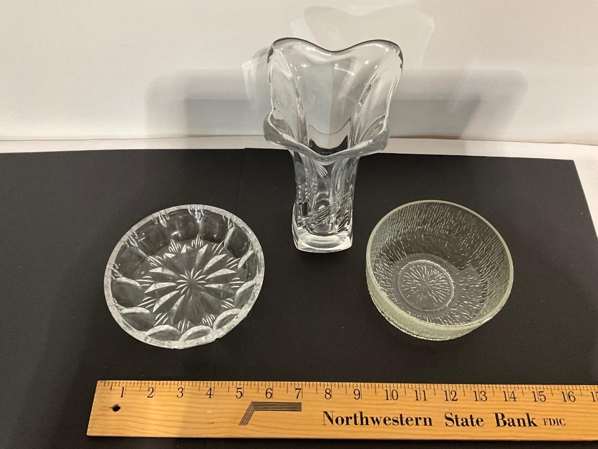 Glass Vase, candy dish, and bowl