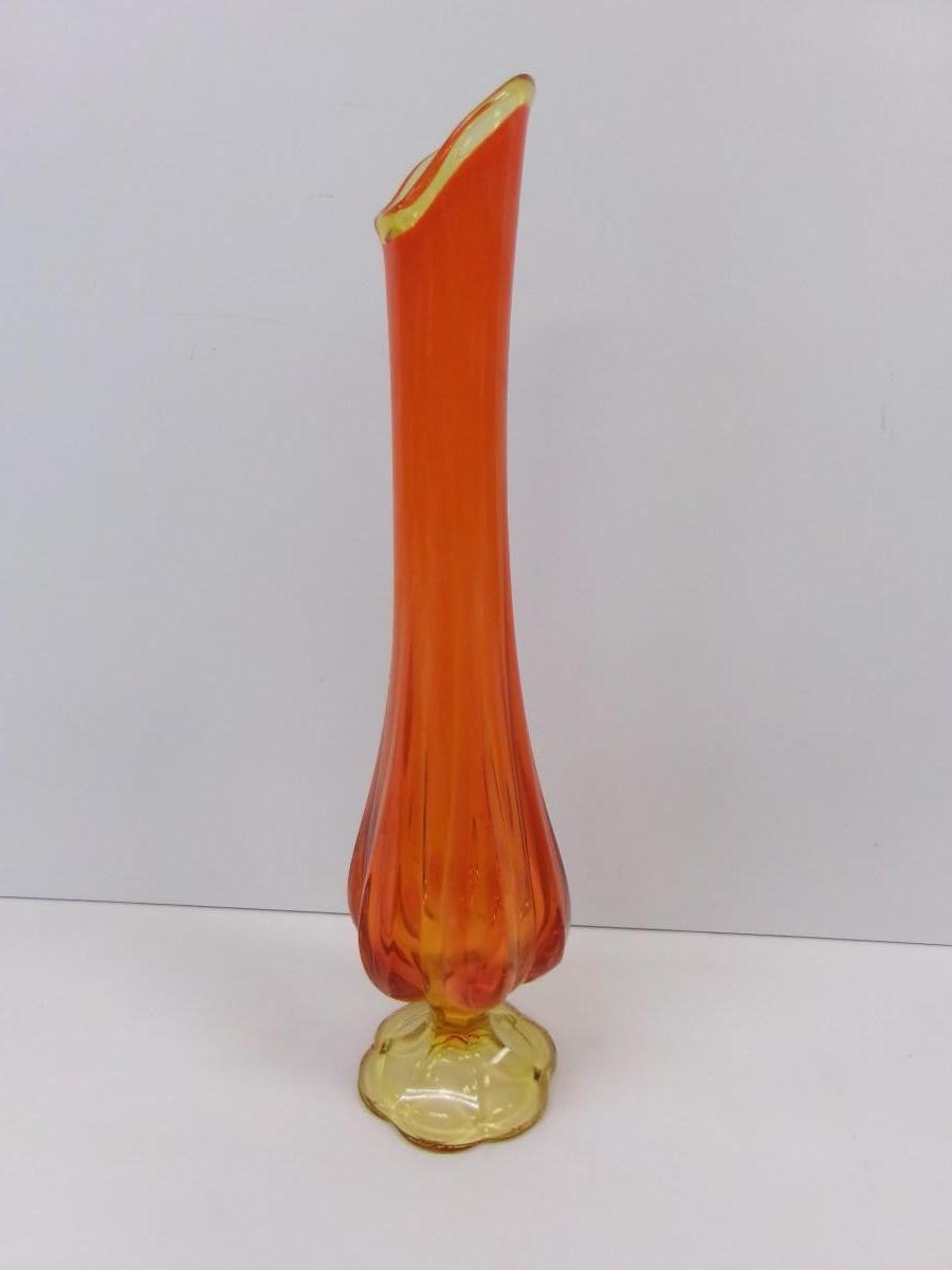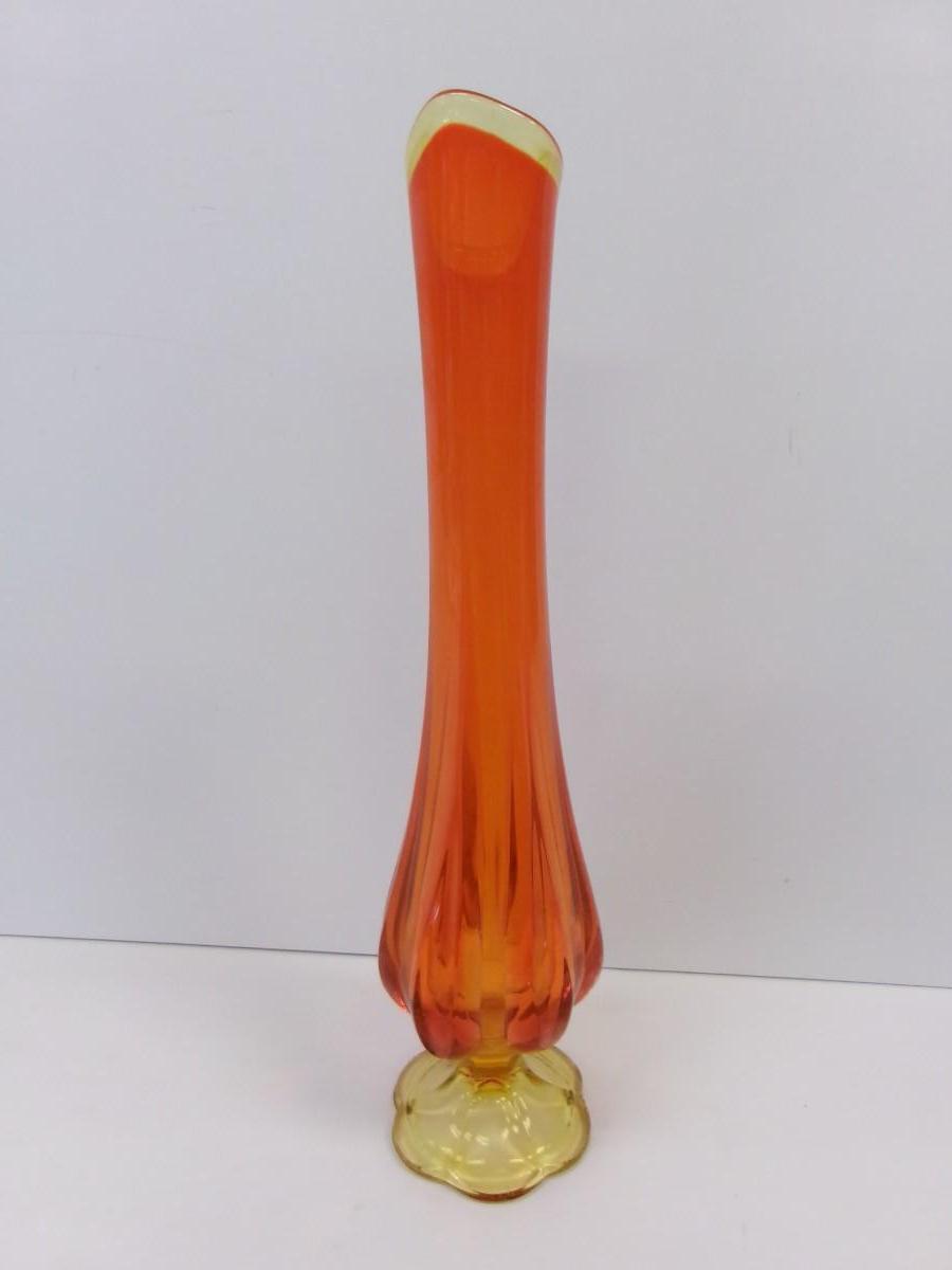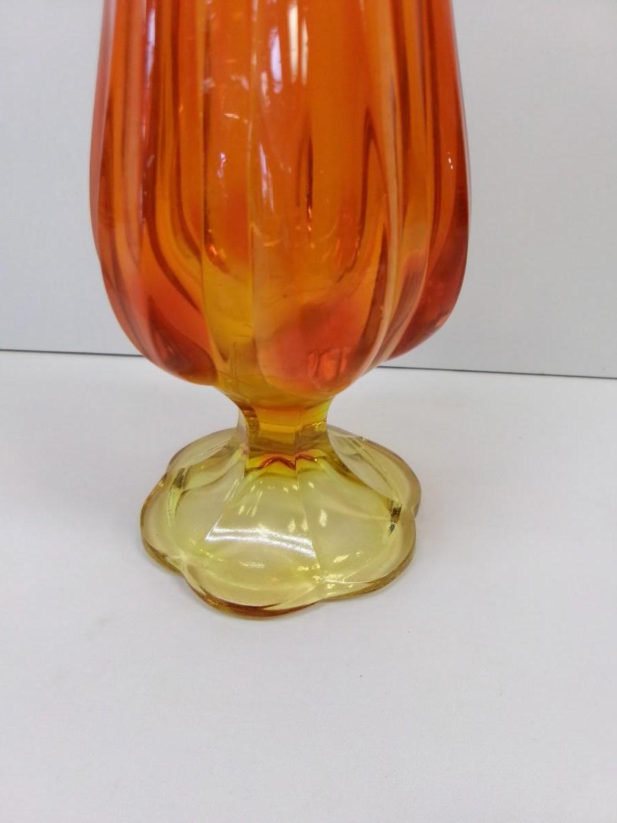 L. E. Smith Simplicity Pattern Swung Tall Yellow & Orange Amberina Glass Vase Approx 22" Tall #20