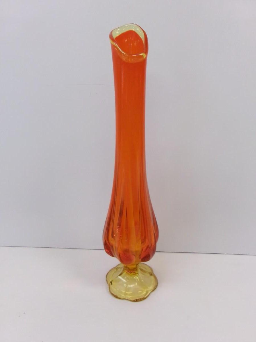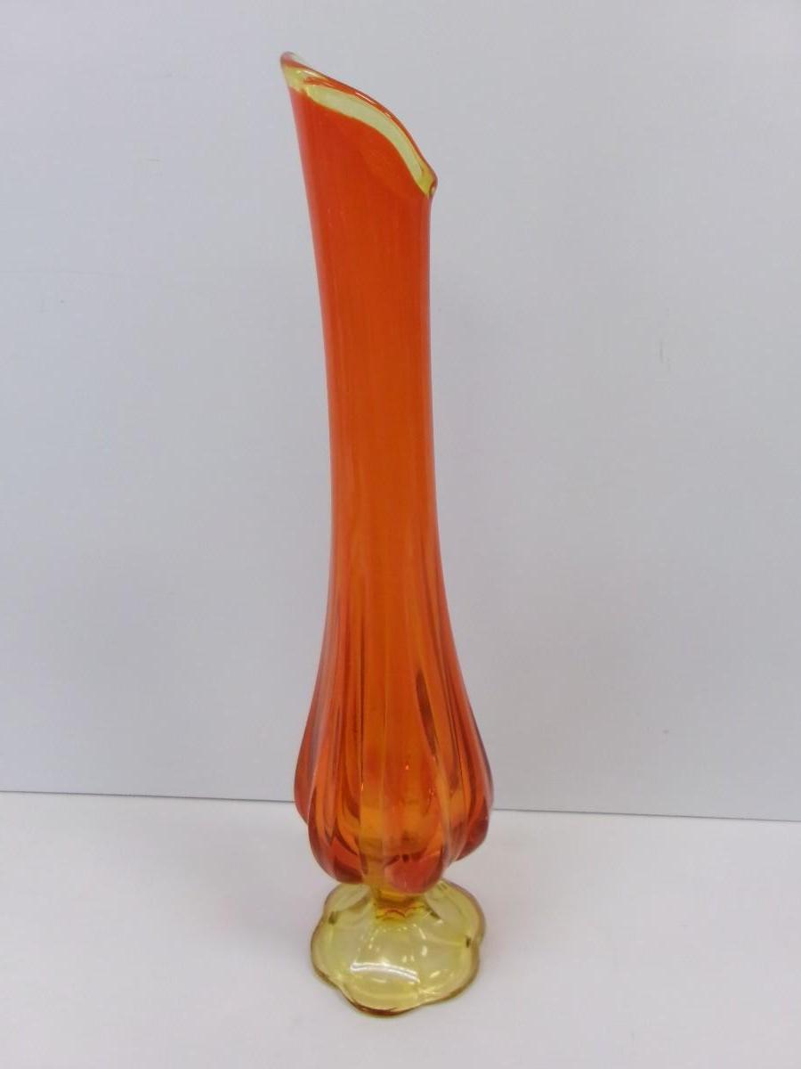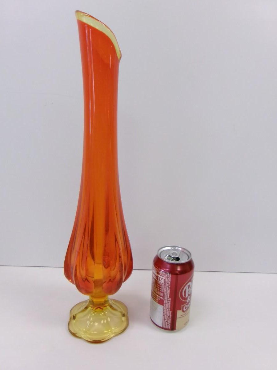 L. E. Smith Simplicity Pattern Swung Tall Yellow & Orange Amberina Glass Vase Approx 22" Tall #20