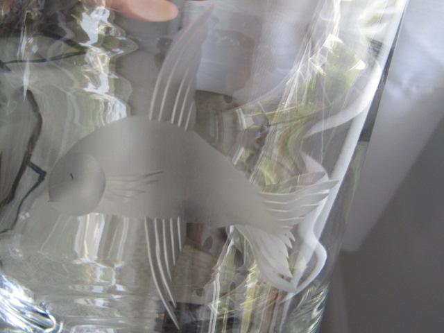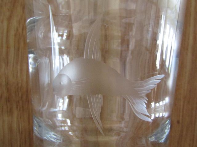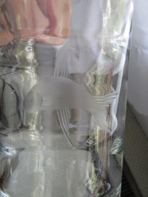 Glass Vase with Etched Coy Fish- 4 1/2" Across