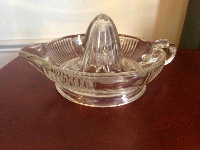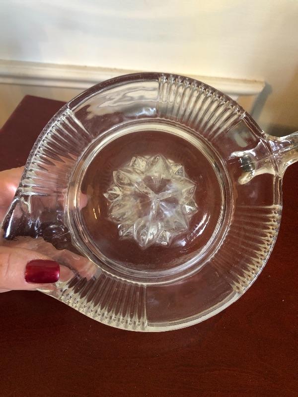 This is a nice size from pouring spout to the handle is 8 inches across otherwise the actual roundness of the piece is 5 1/2 inches wide no chips or cracks that we could find or see in this piece