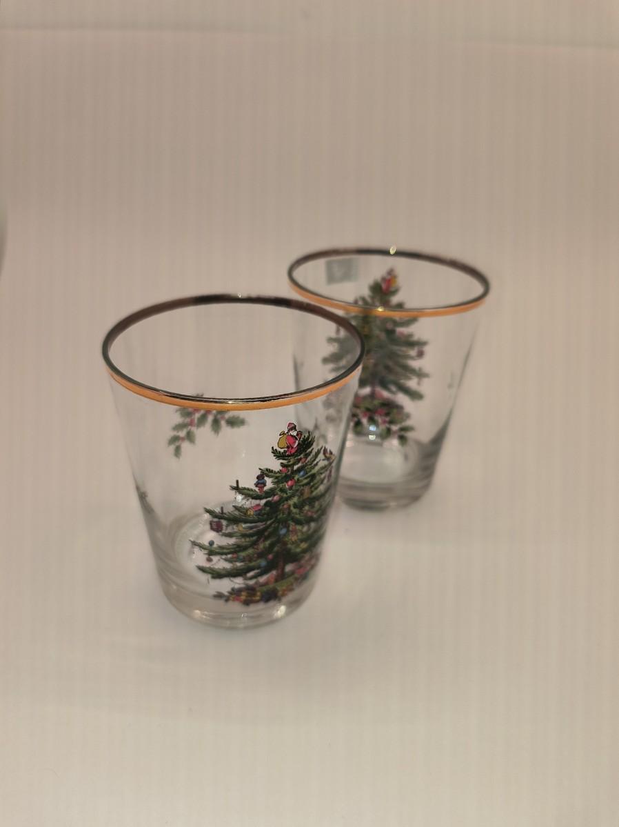 2 trapezoid glasses with Christmas tree