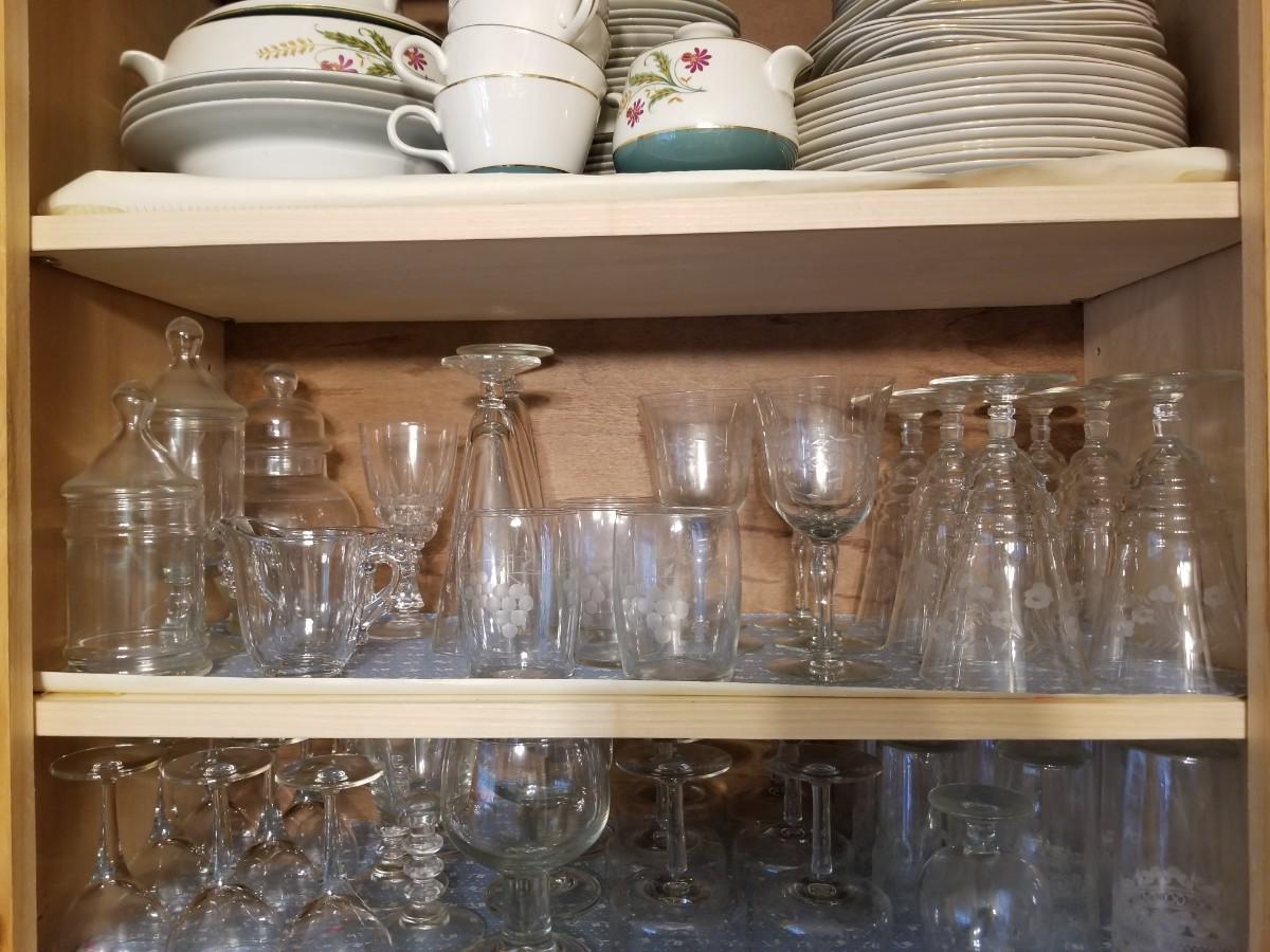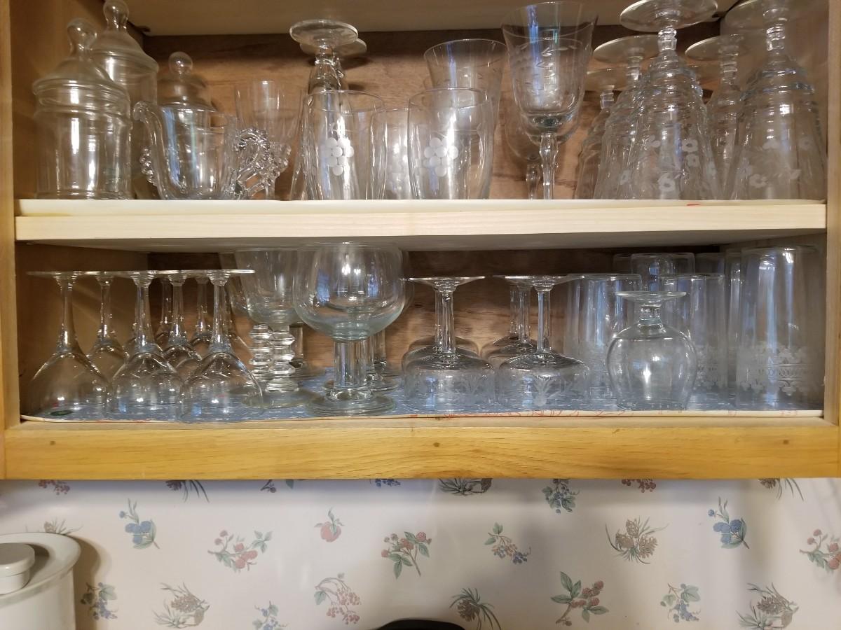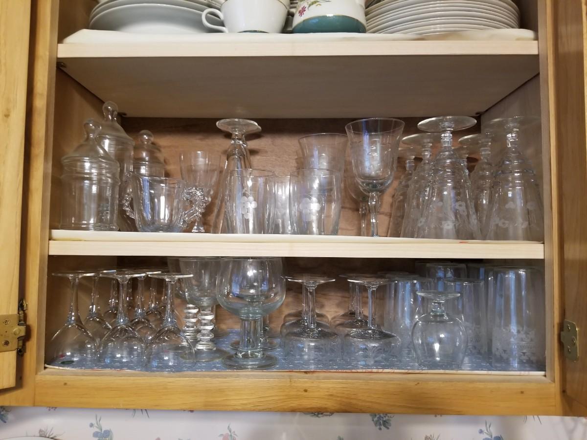 2 Shelves of glasses