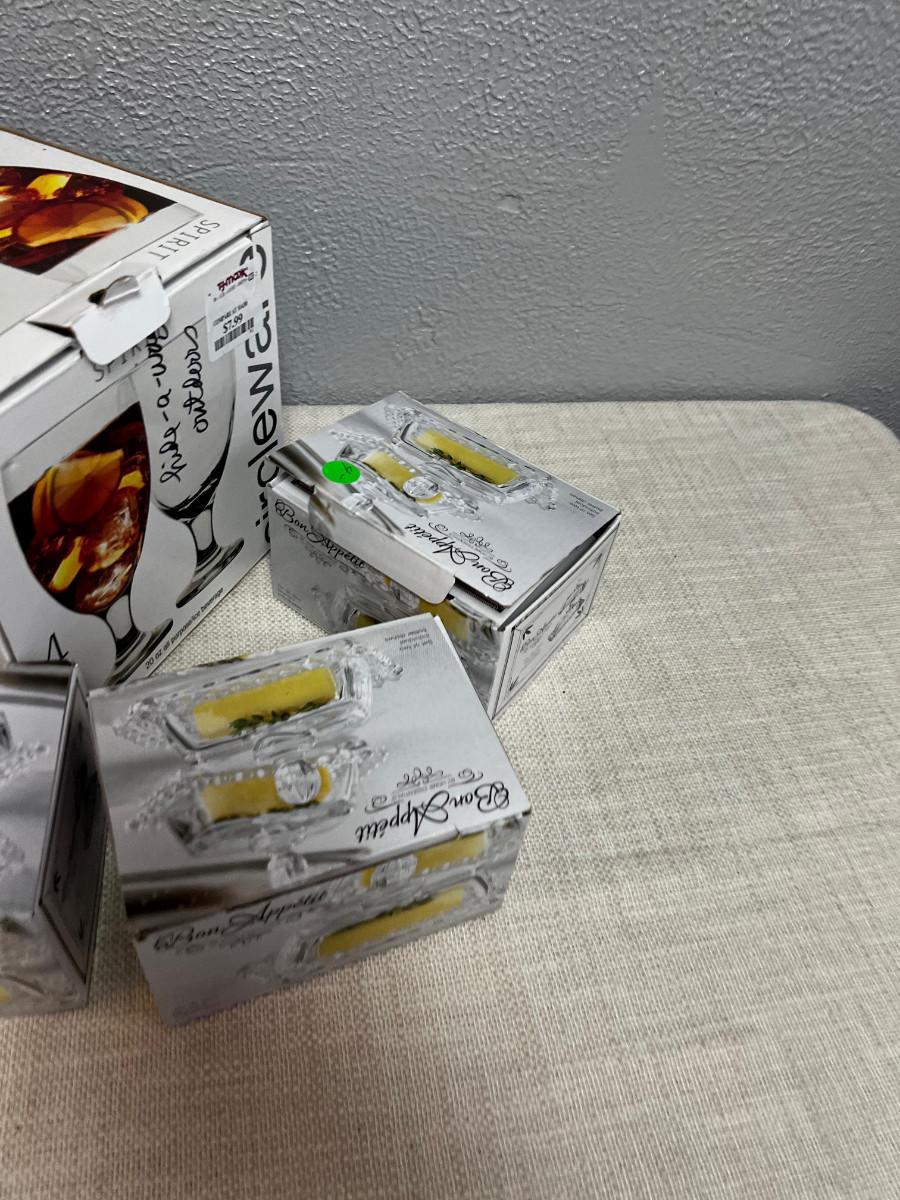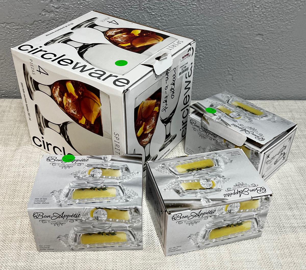 Glasses and Butter Serving Dishes NEW in the Box