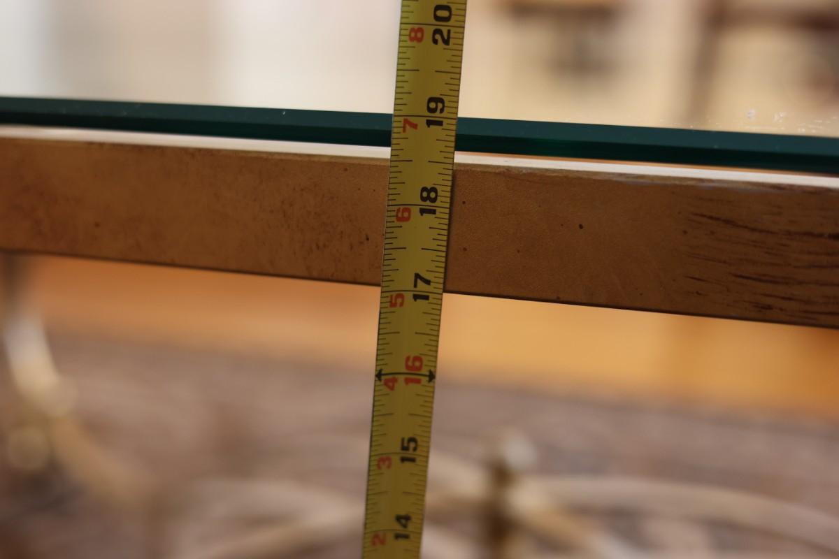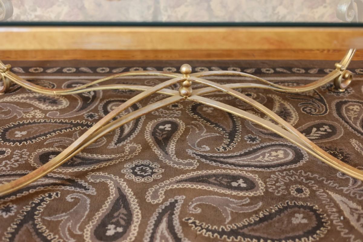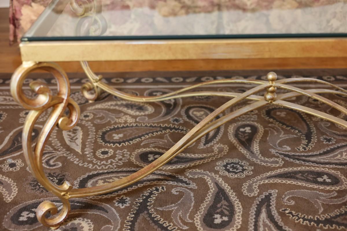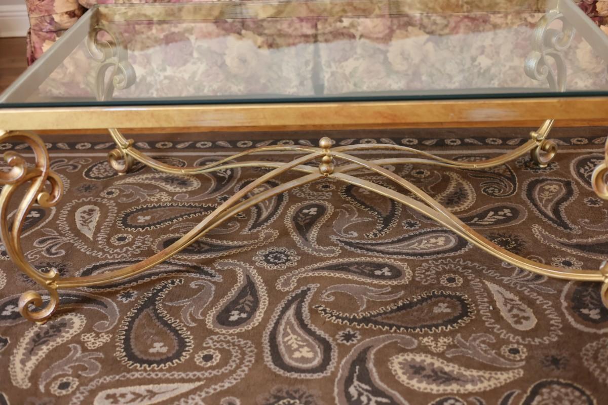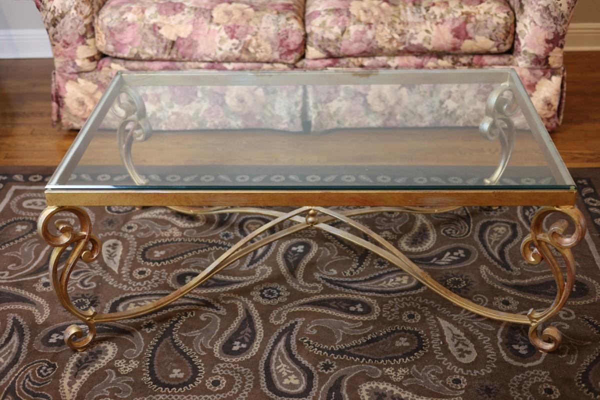 Glass-Top Coffee Table with Heavy Gold Scroll Metal Base