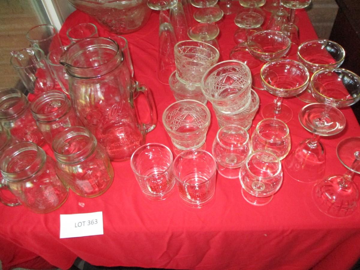 Glasses, Chapagne, flutes, goblets, punch bowl and cups