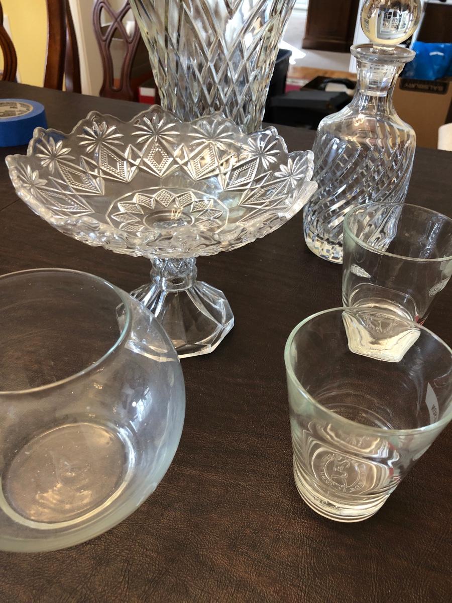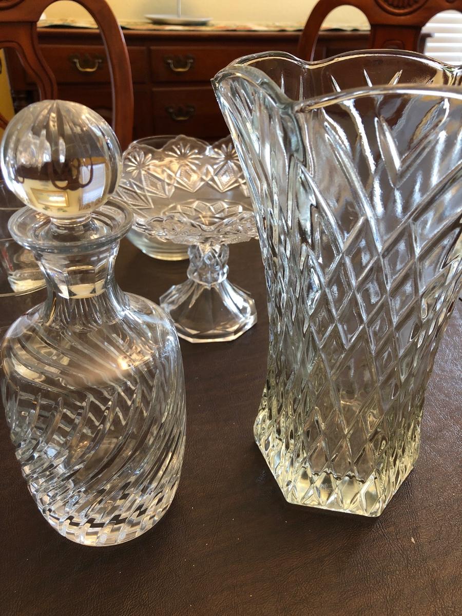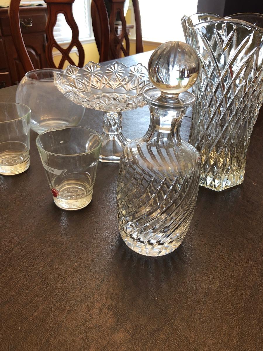 Heavy crystal decanter, and other glassware . See pictures.