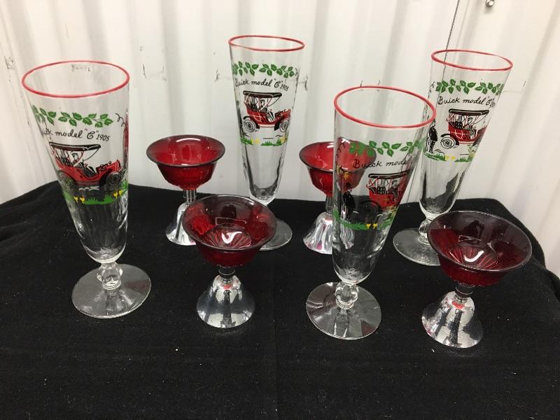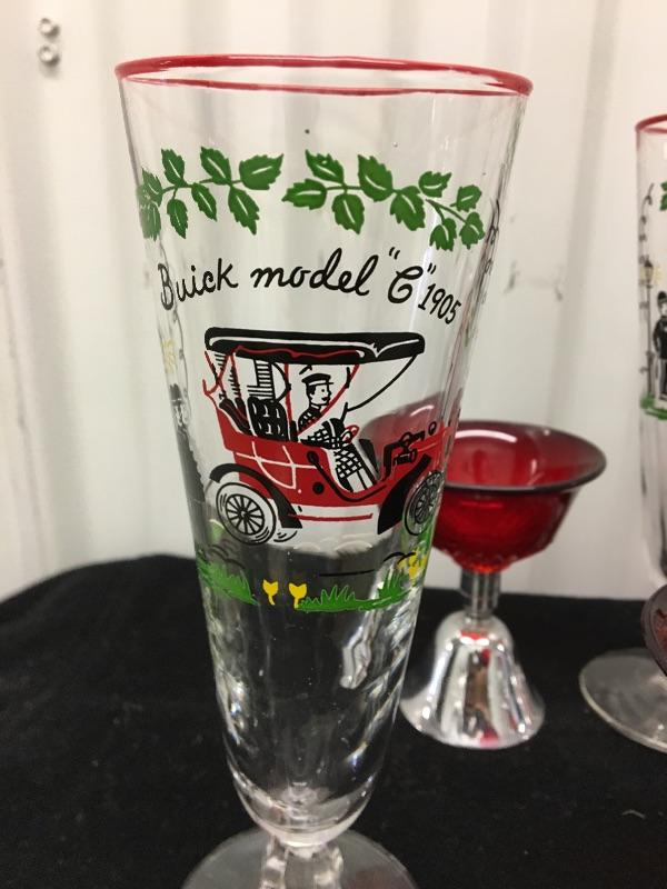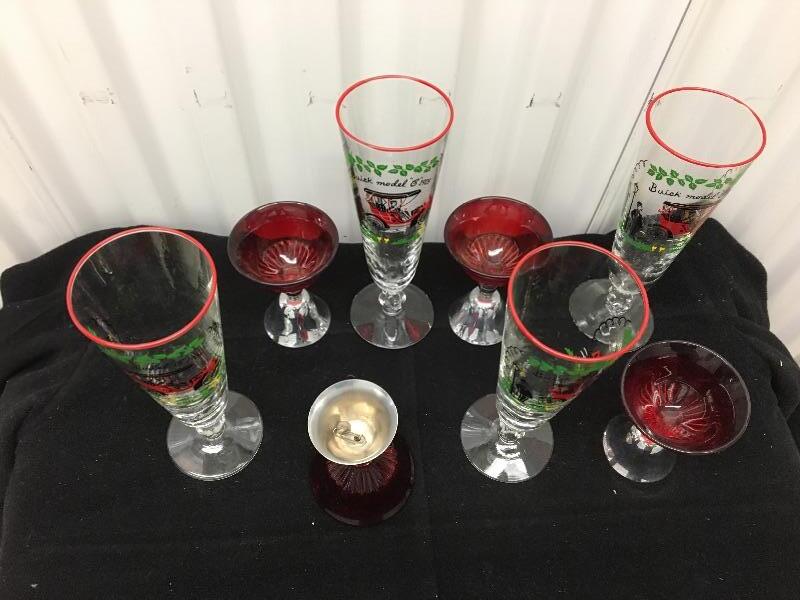 Includes four Buick 8.5” glasses and four 4” Red bell glasses. All in very good condition. Packaging and shipping services available. Please contact us for a quote before bidding.