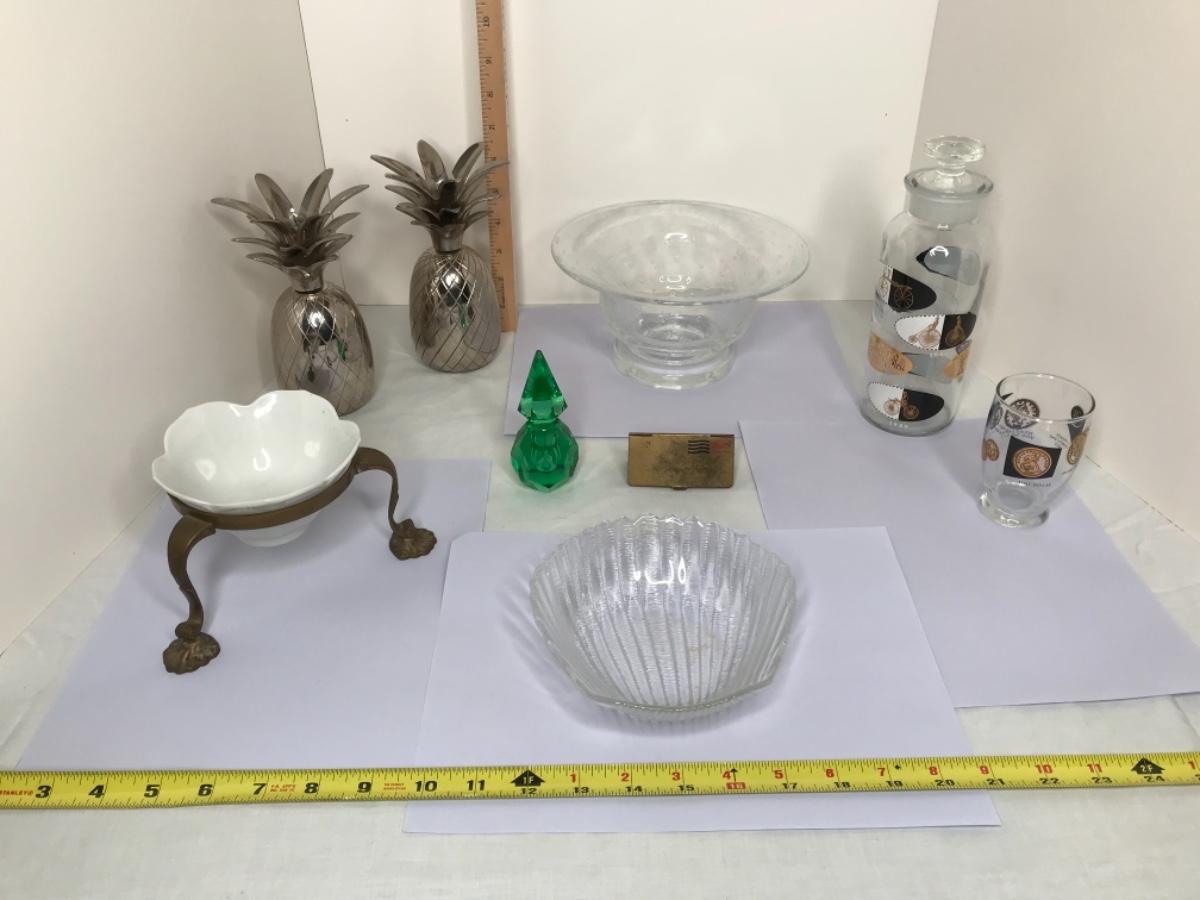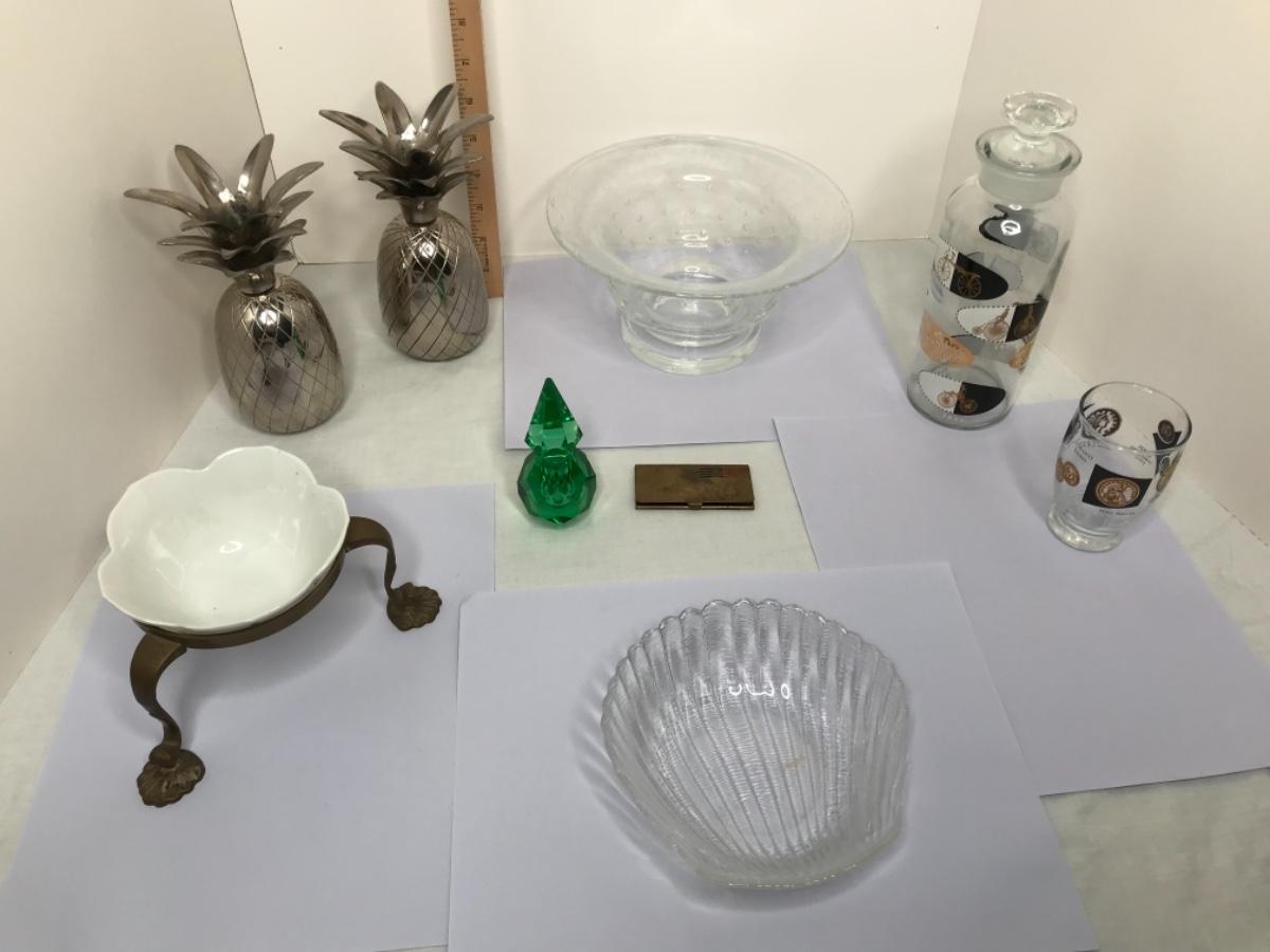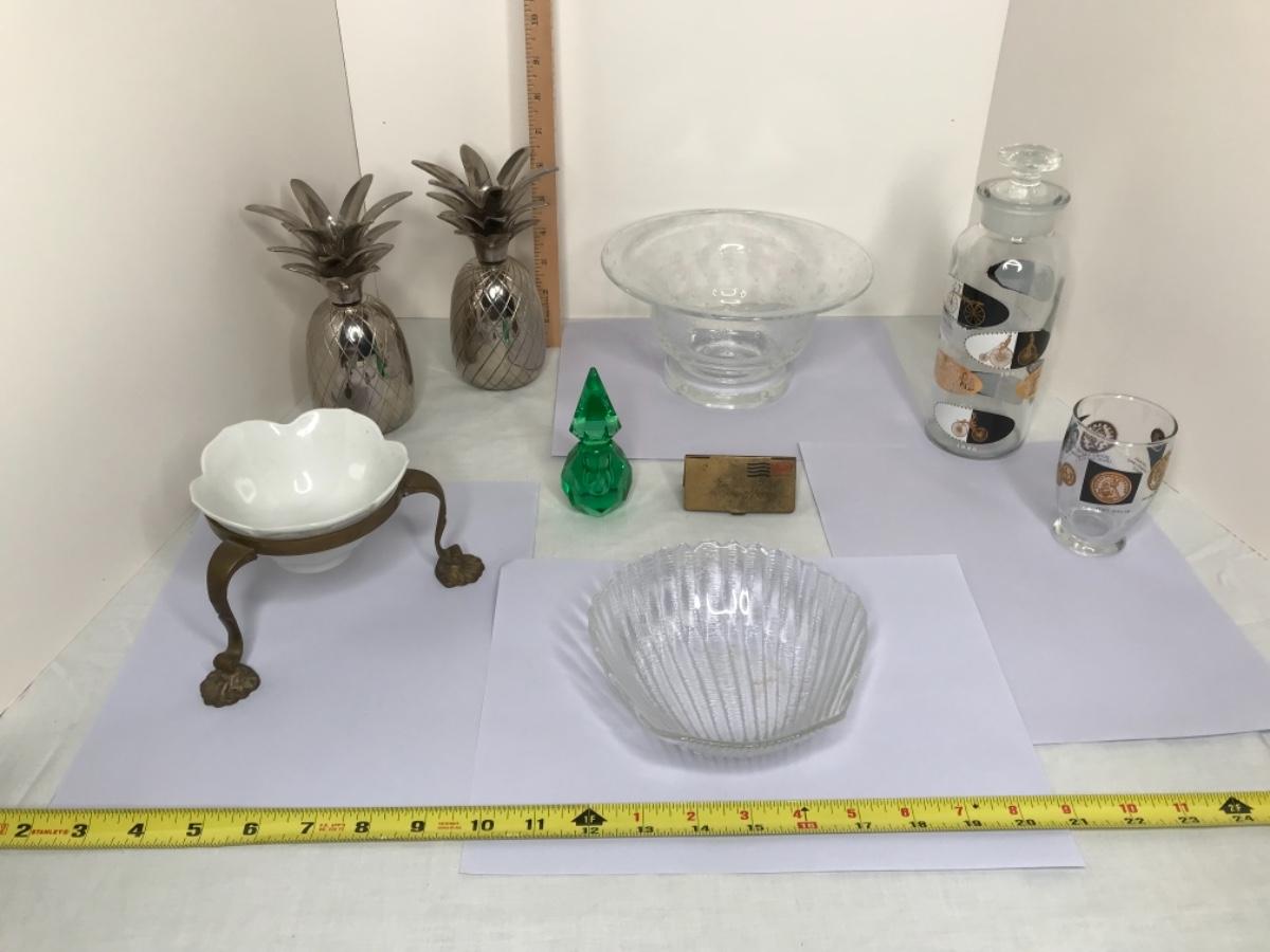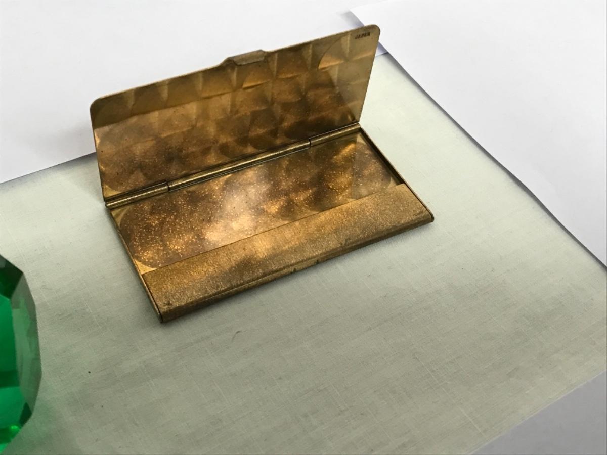 Ceraglass bottle with top and 1 small glass MCM with black and gold labels