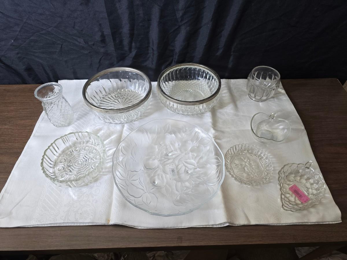 Glassware - fruit designs - silver color rimmed bowls and more