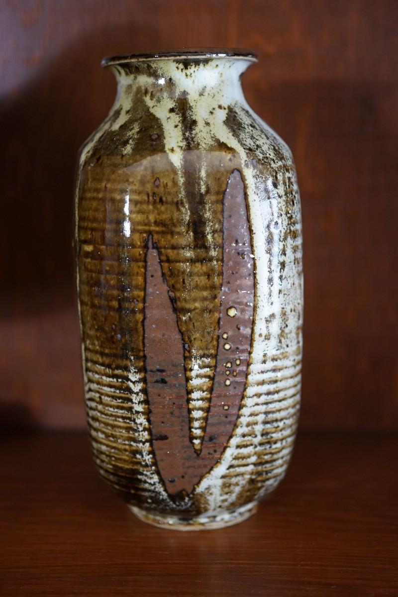 ATTRACTIVE GLAZED ART POTTERY VASE UNSIGNED.