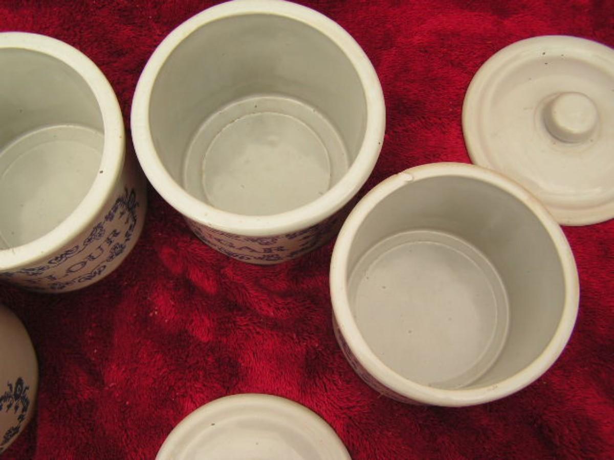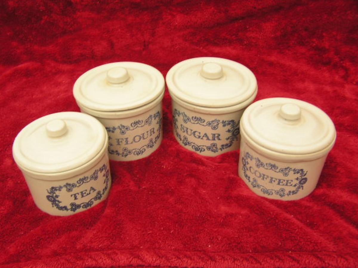 Glazed ceramic 4 canister set. Clean and well cared for.
