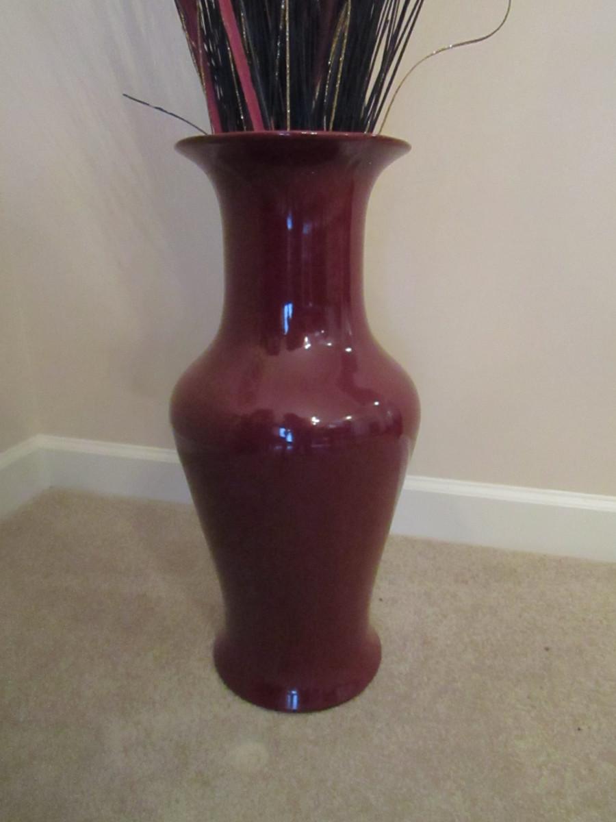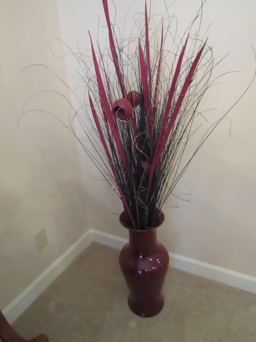 Glazed Ceramic Floor Vase with Accent Arrangement
