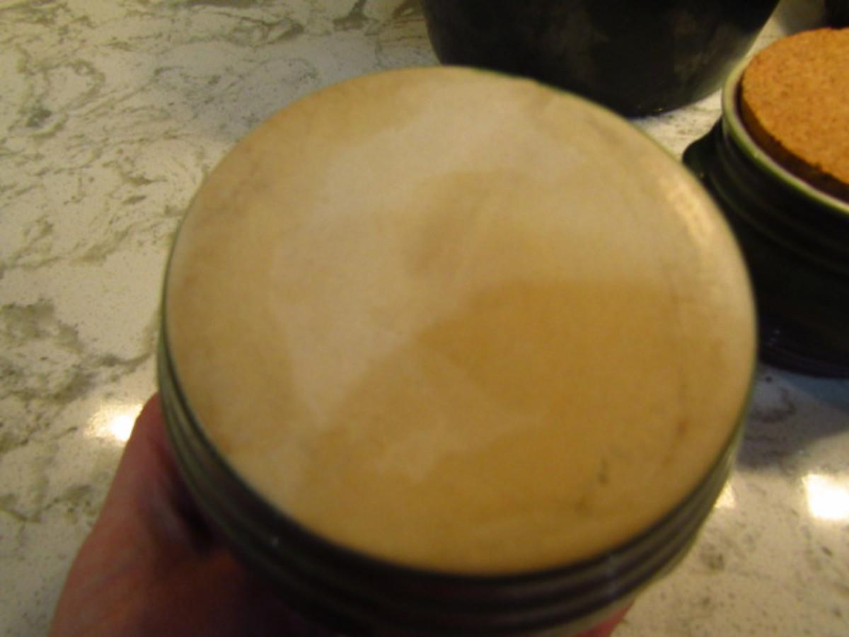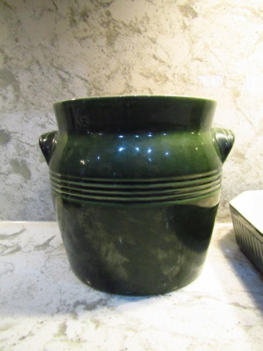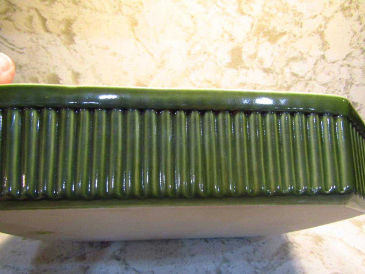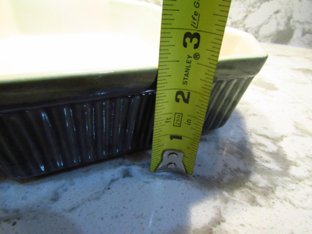 Glazed Ceramic Kitchen Ware (Kitchen). Two spice jars with cork lids. Cookie jar- no lid. Rectangular baking dish- 12" x 9" x 2 1/2".