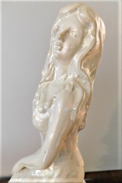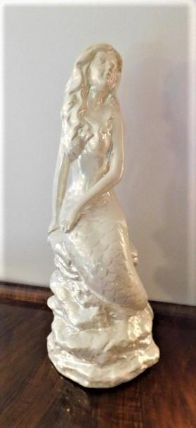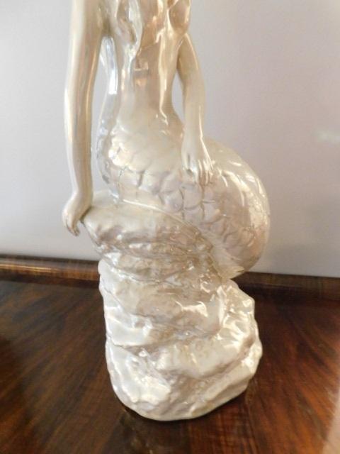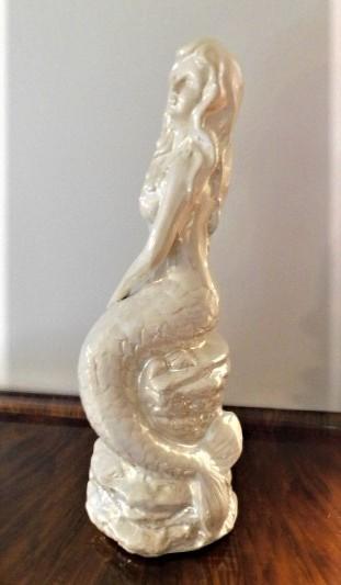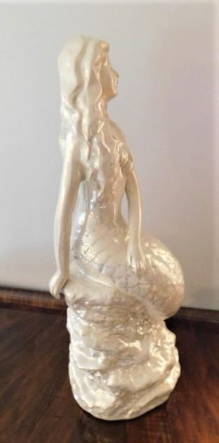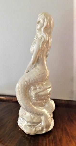 Glazed Ceramic Mermaid Statue- 19" Tall