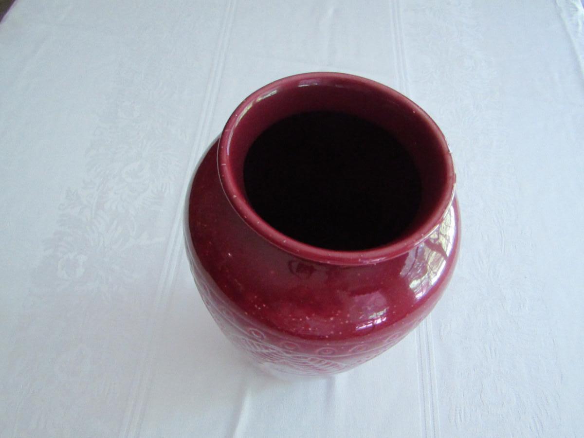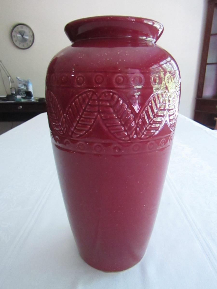Glazed Ceramic Vase with Leaf Design- Approx 11" Tall