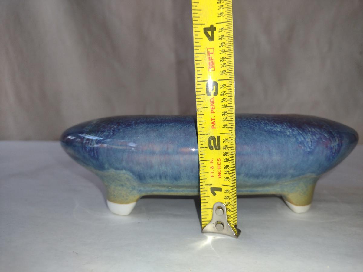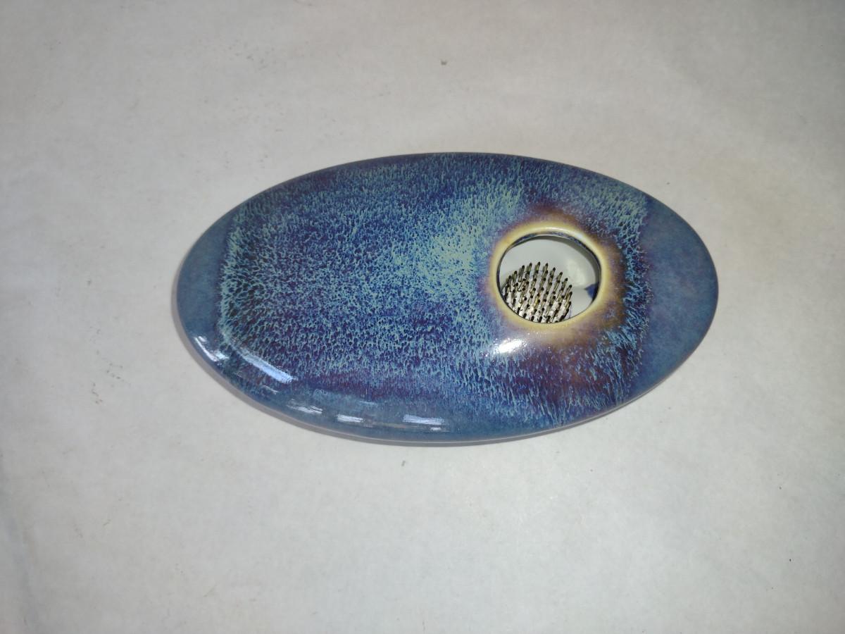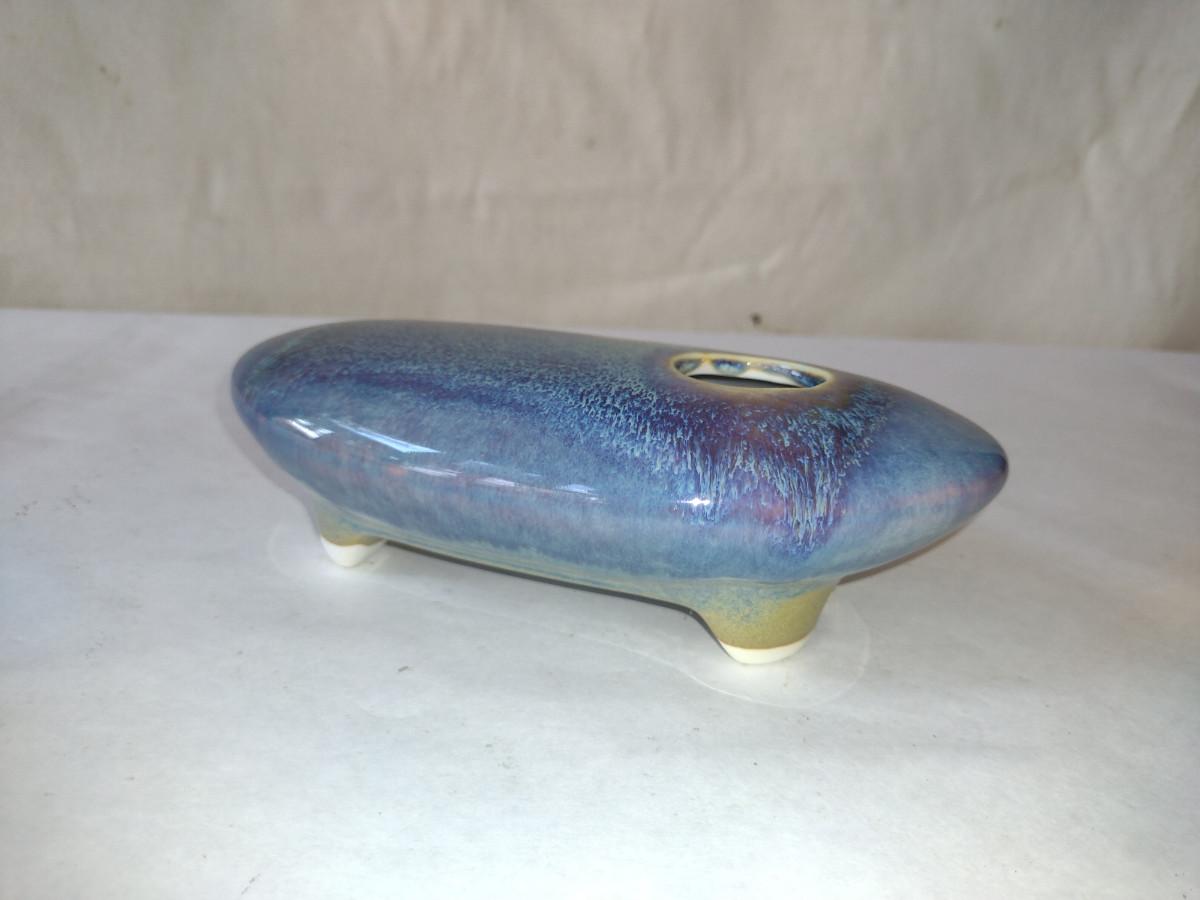 Glazed, Footed Ceramic Ikebana Vase with Flower Frog- Signed by Artist