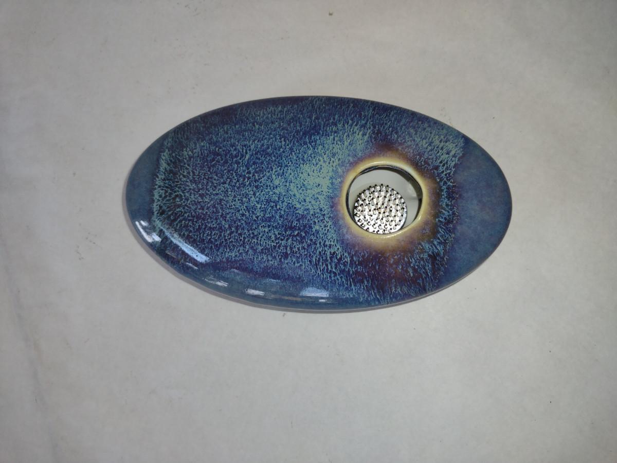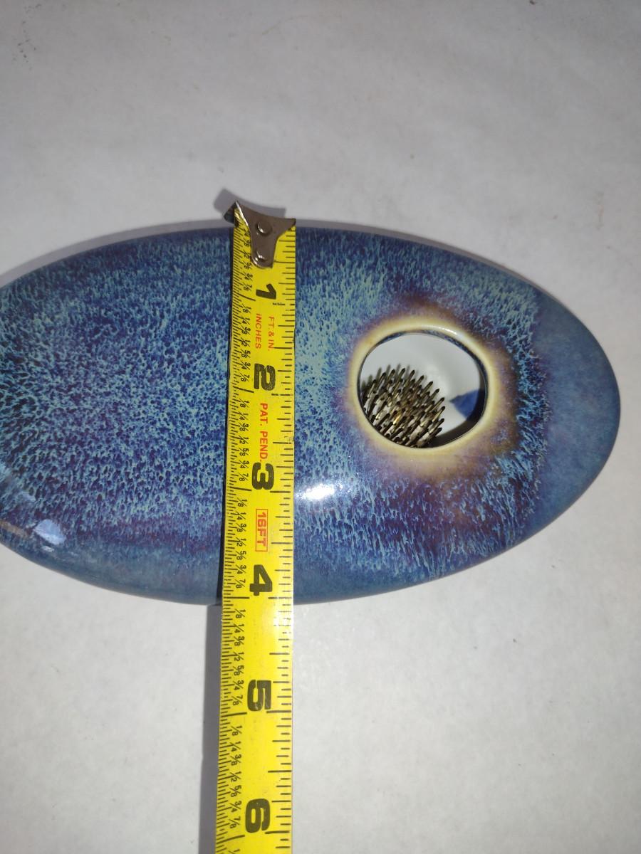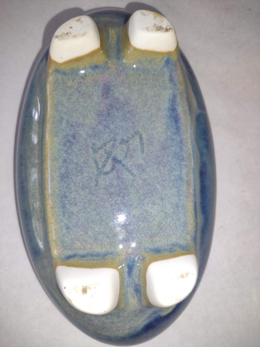 Glazed, Footed Ceramic Ikebana Vase with Flower Frog- Signed by Artist