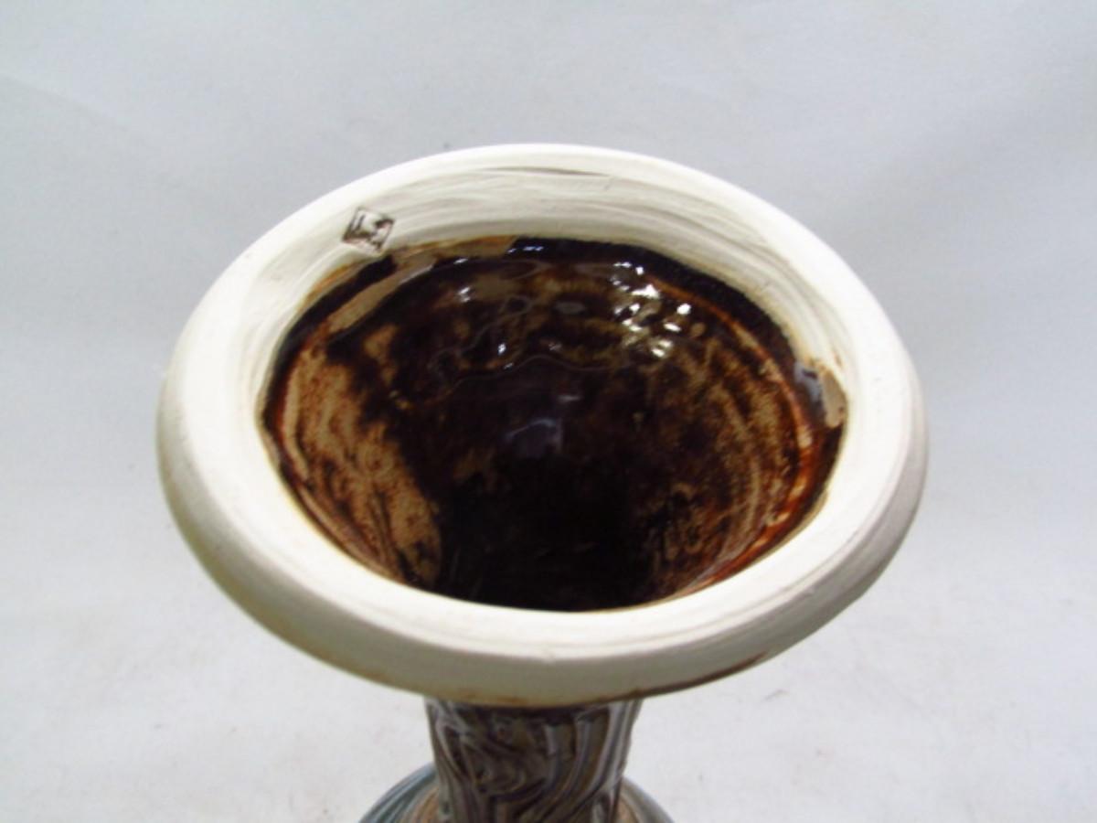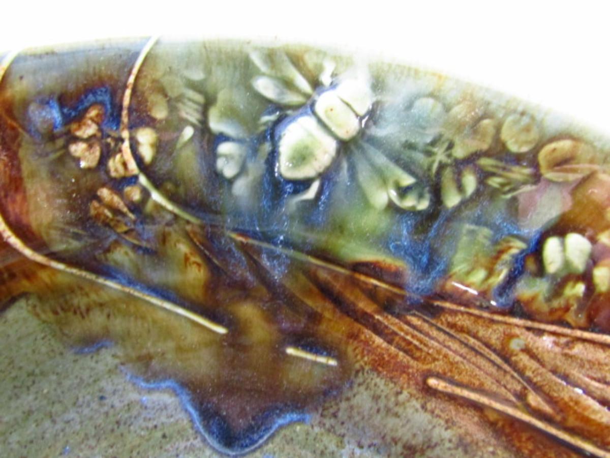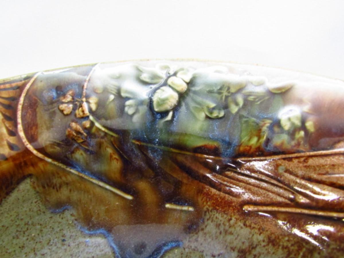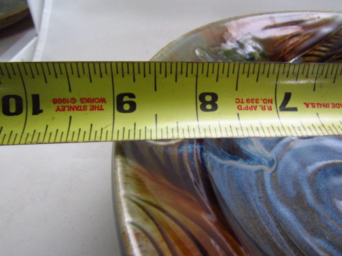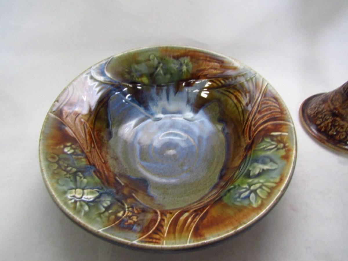 Glazed Hand Made Bowl and Goblet from Hazelwood Pottery- Waynesville, NC by Laurey Faye Dean. Each piece is stamped. The bowl measures approx 9" in diameter and features butterflies and dragonflies. The goblet features dragons.
