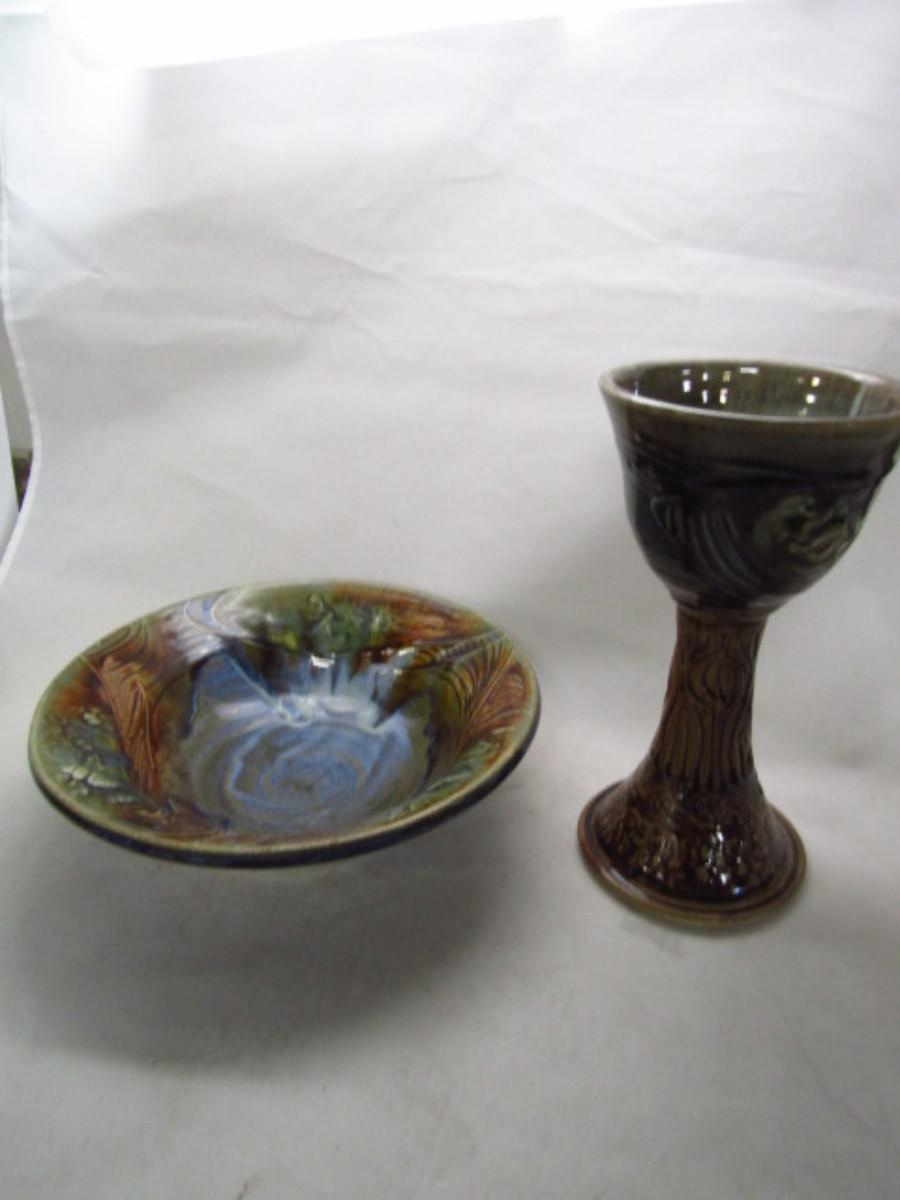 Glazed Hand Made Bowl and Goblet from Hazelwood Pottery- Waynesville, NC by Laurey Faye Dean