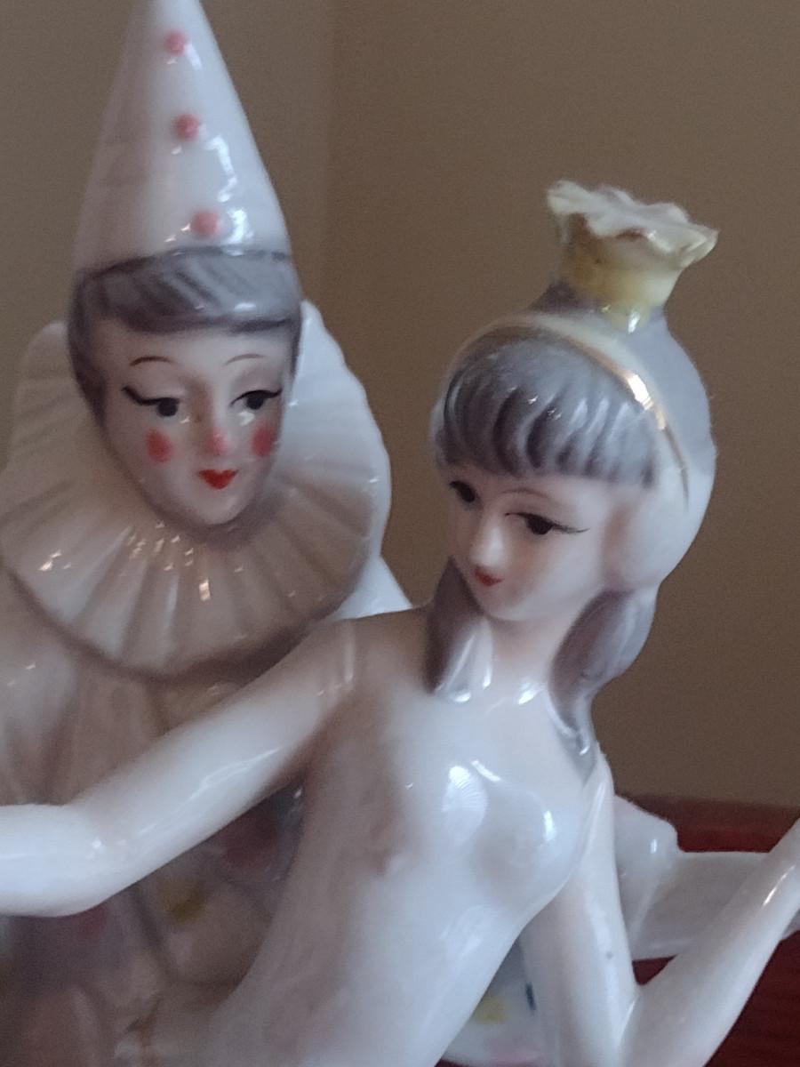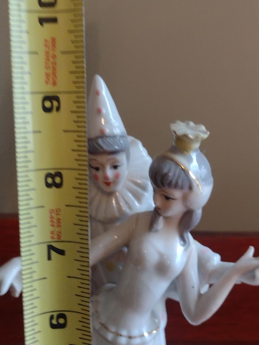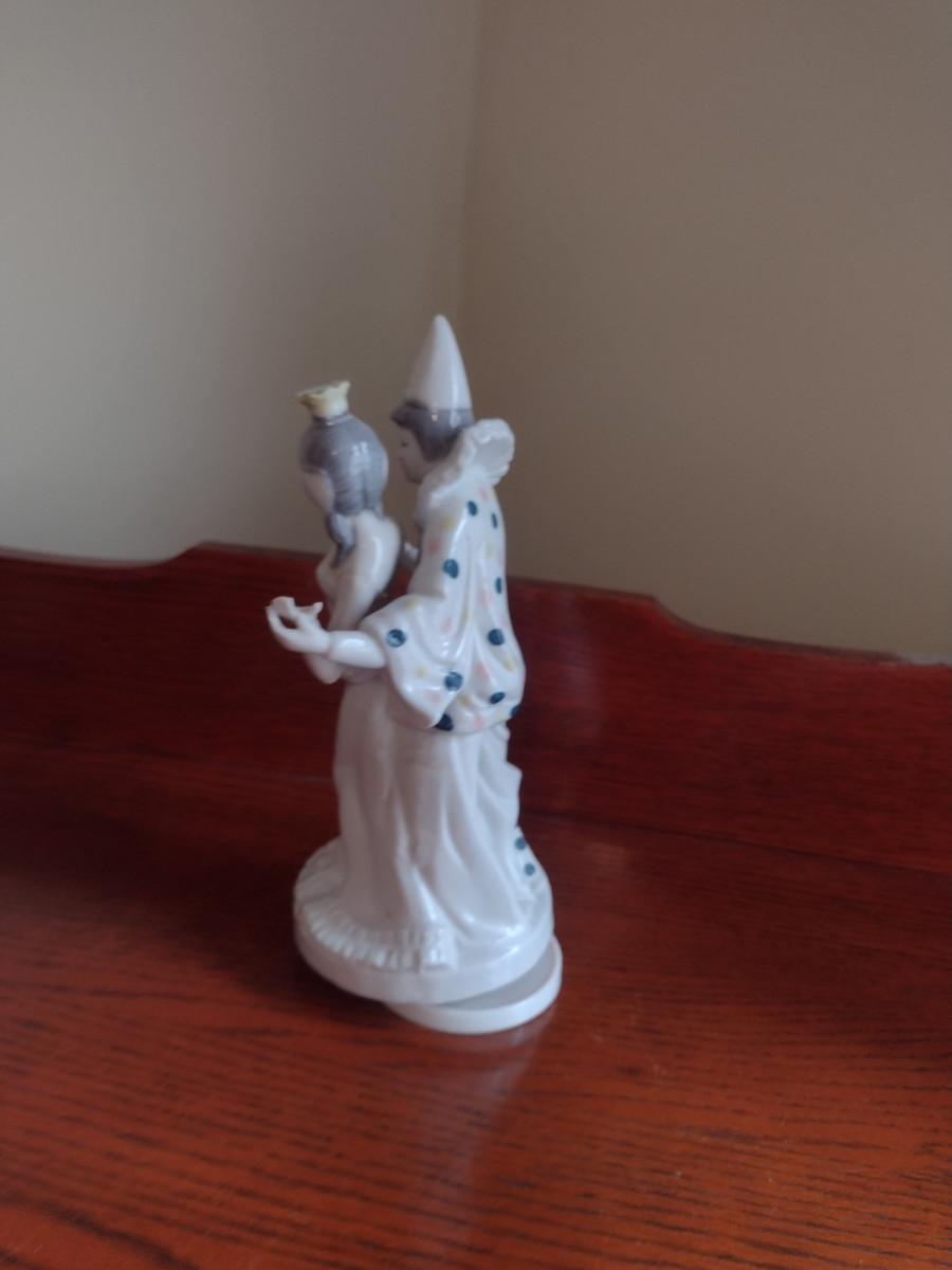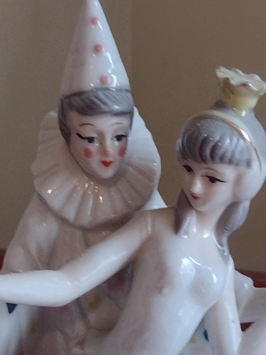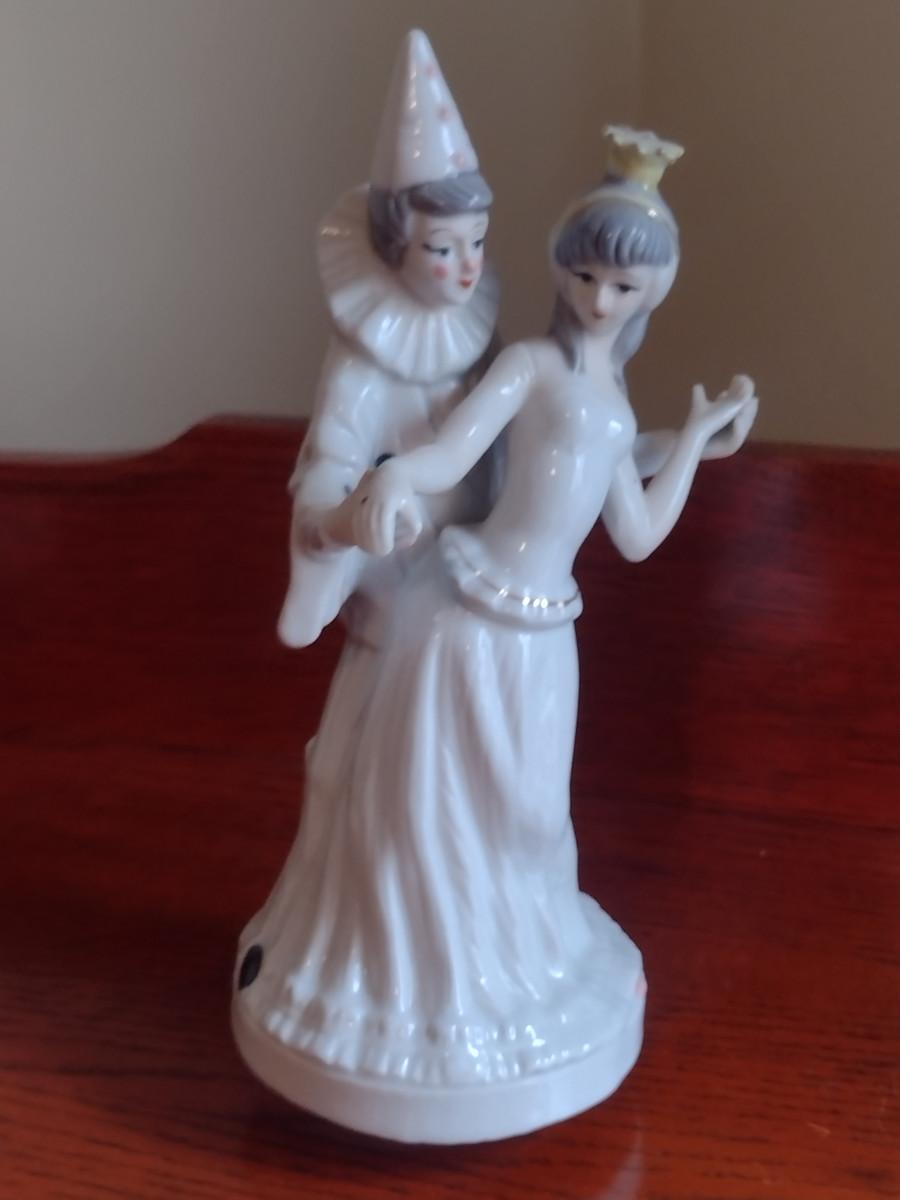 Glazed Porcelain Clown Couple Music Box. Plays 'Send in the Clowns'.