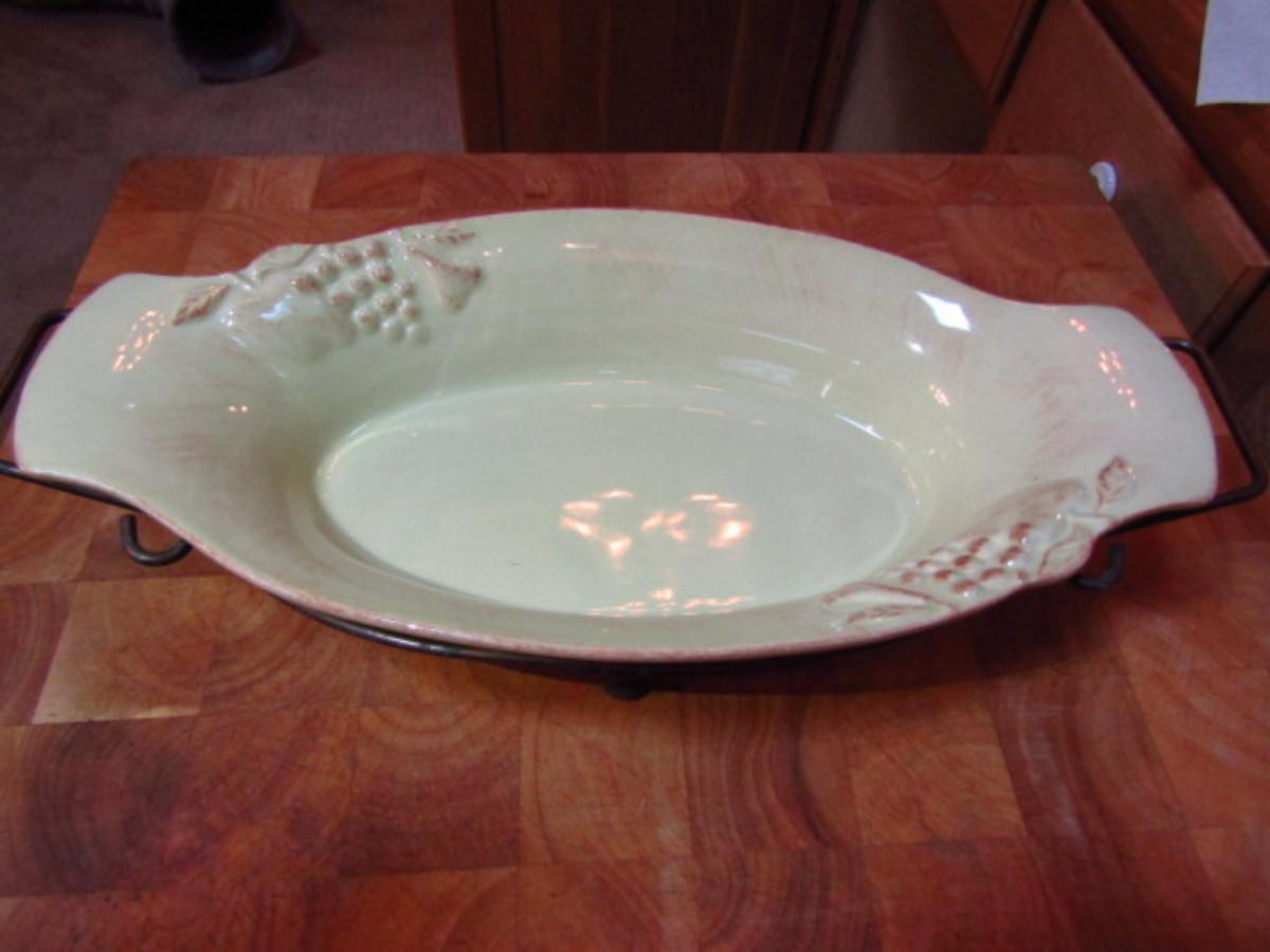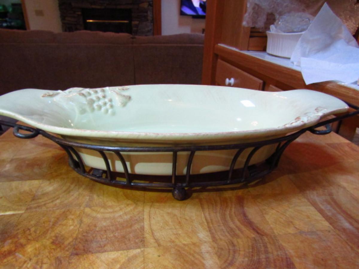 Glazed Pottery Baker by Casafina with Metal Holder- Madeira Harvest Pattern
