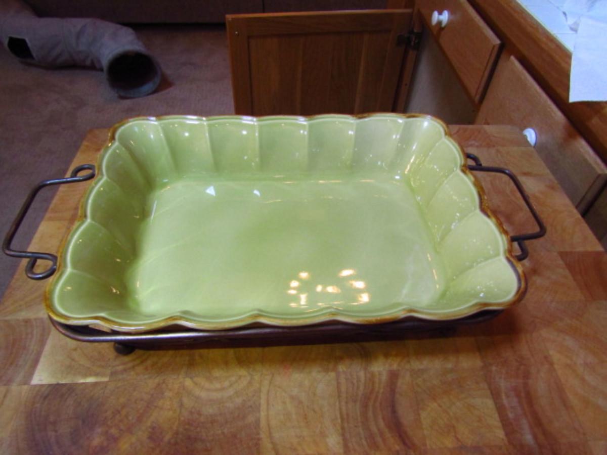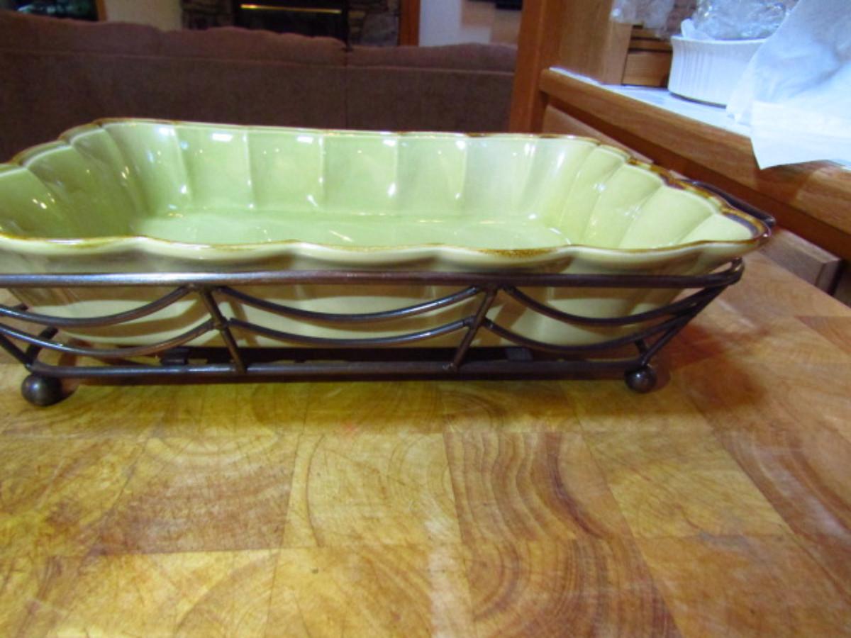 Glazed Pottery Baker by Casafina with Metal Holder- Autumn Waves Pattern