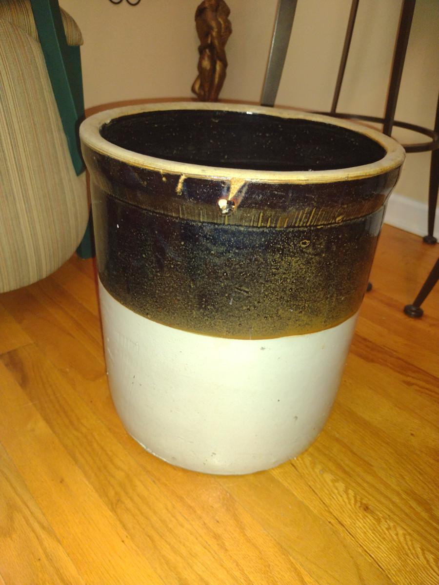 Glazed Pottery Crock- #6 Size. Item has chipped area on rim- please see all pictures.