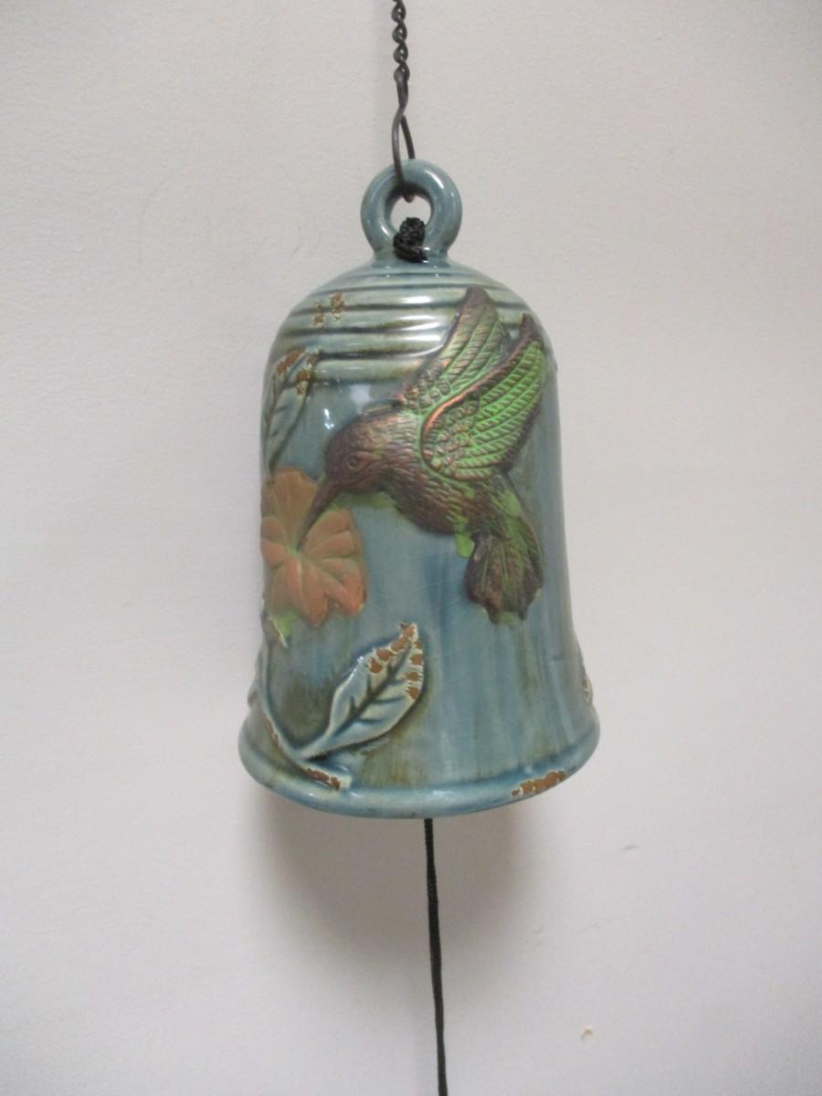 Glazed Pottery Hummingbird Bell