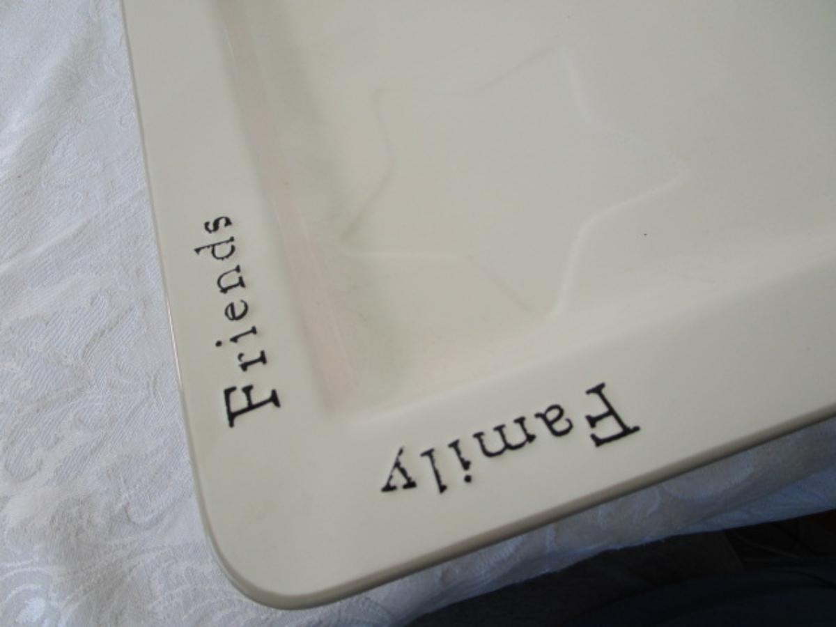 13' x 13', has "Family" & "Friends" on the lip