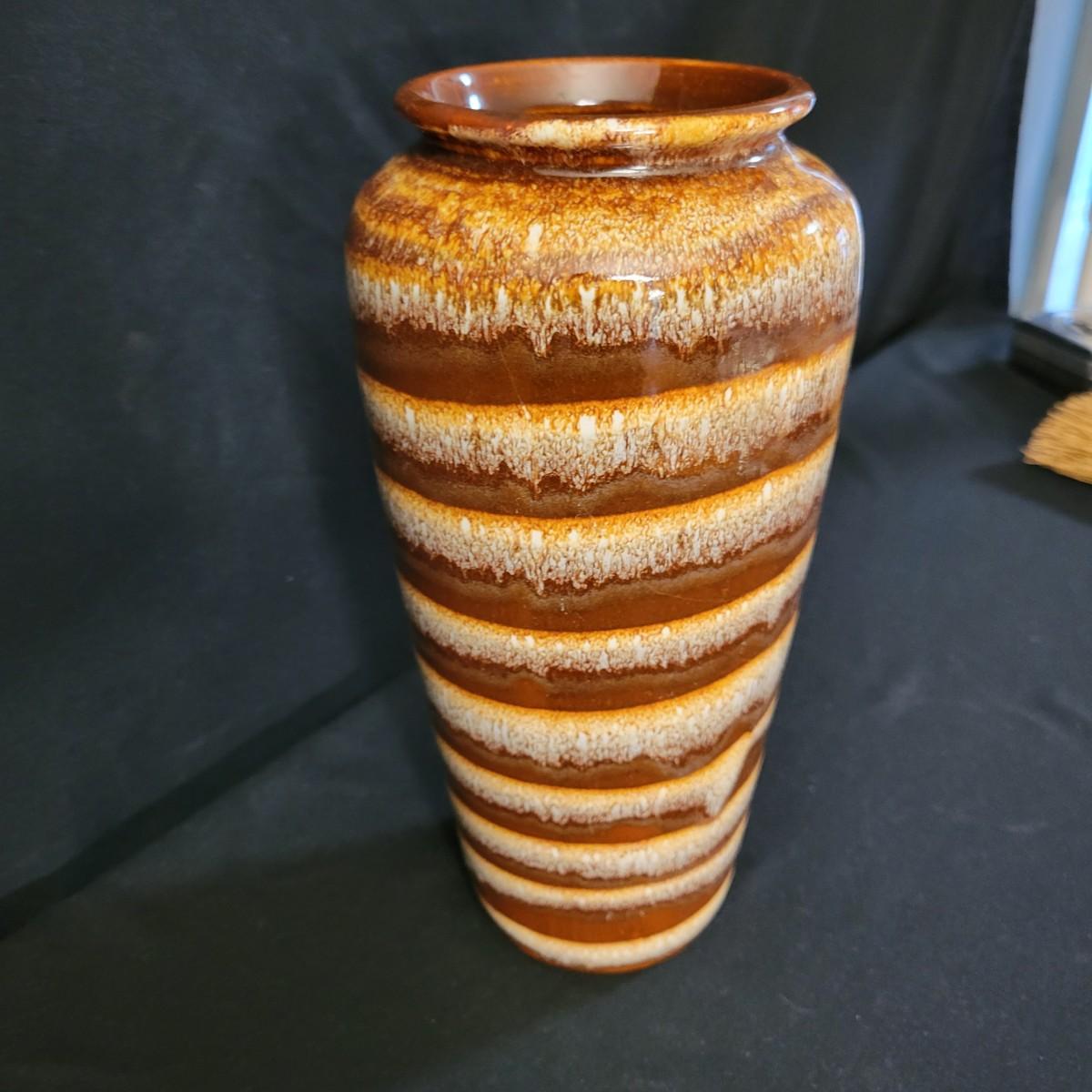 A lovely glazed pottery vase in excellent condition. This piece is made in the style of Jasba Keramik, but could not be confirmed. Measures approximately 5" x 10". Shipping available