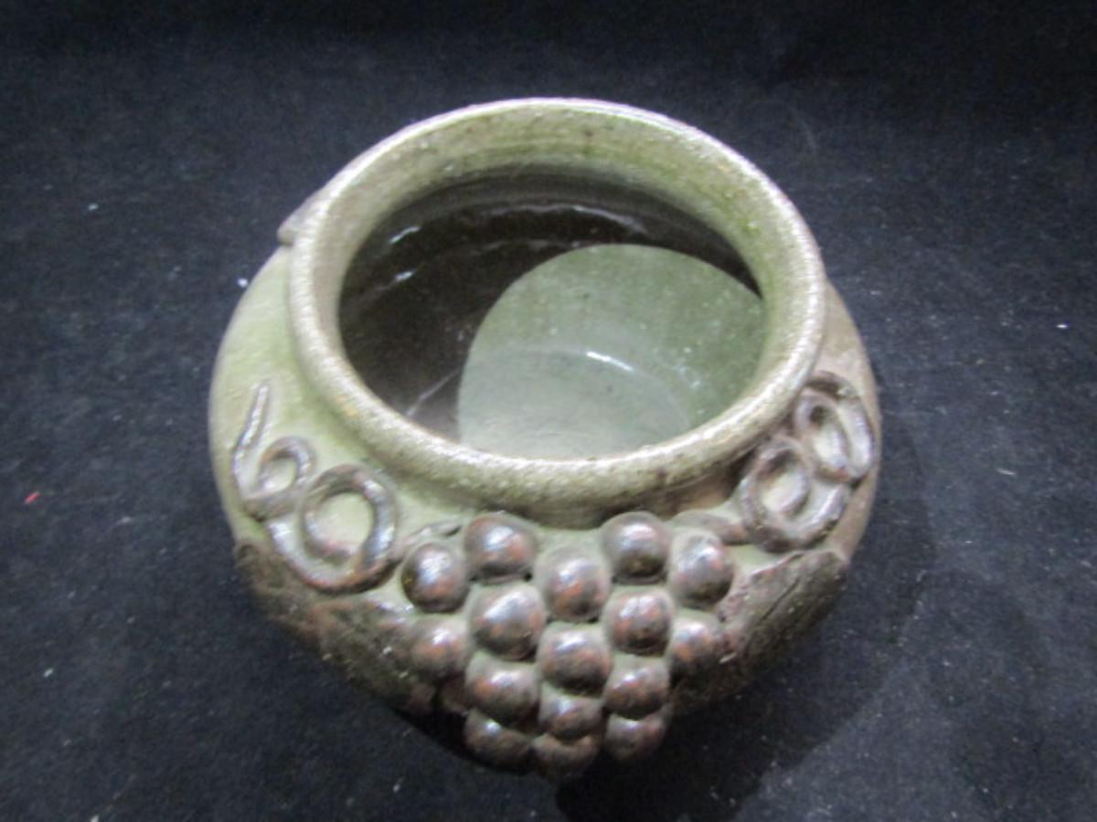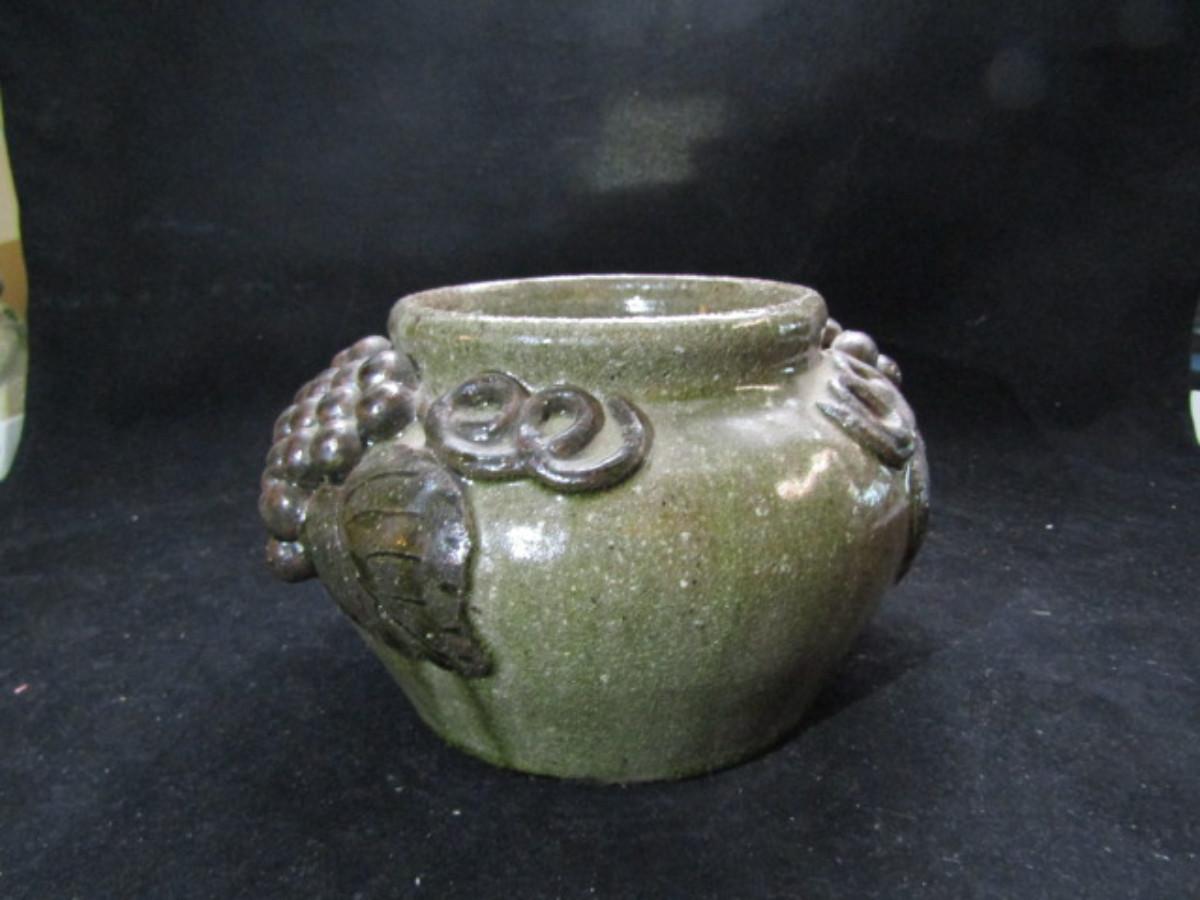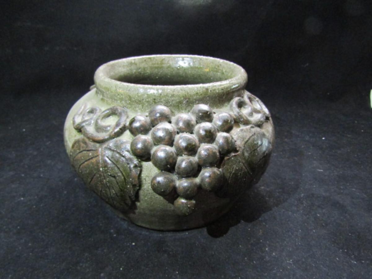 Glazed Pottery- Vase with Grapes and Leaves Pattern- Signed (#431)