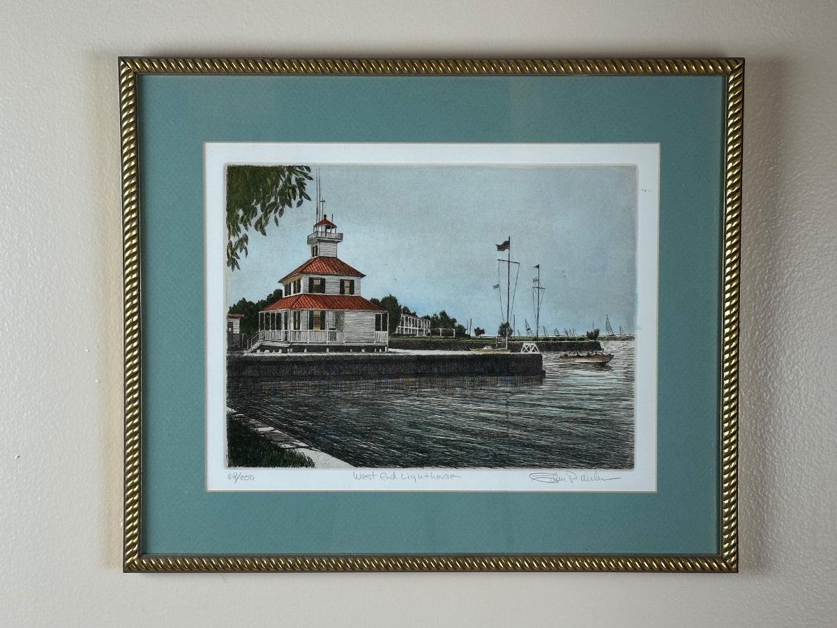 Glen P. Weber “West End Lighthouse” Signed Etching