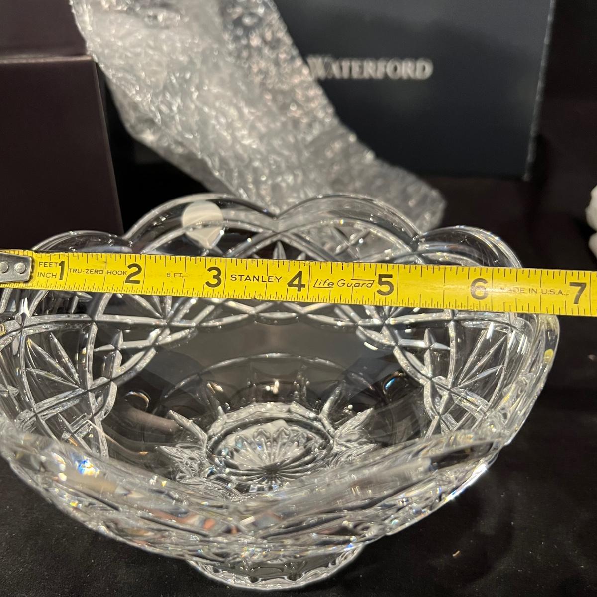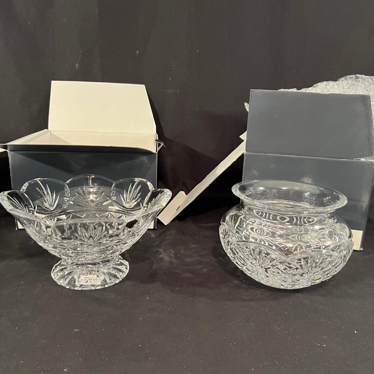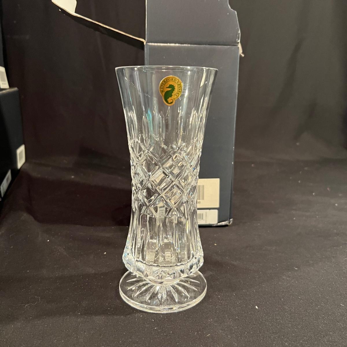 12 plus Waterford Crystal vases and bowls plus a pitcher which measures 5” D (base) x 10”H. All items appear to have been stored in their boxes and are likely new. See images for full inventory and measurements.