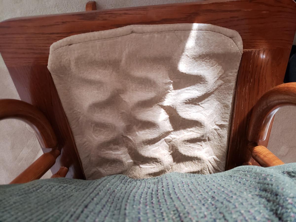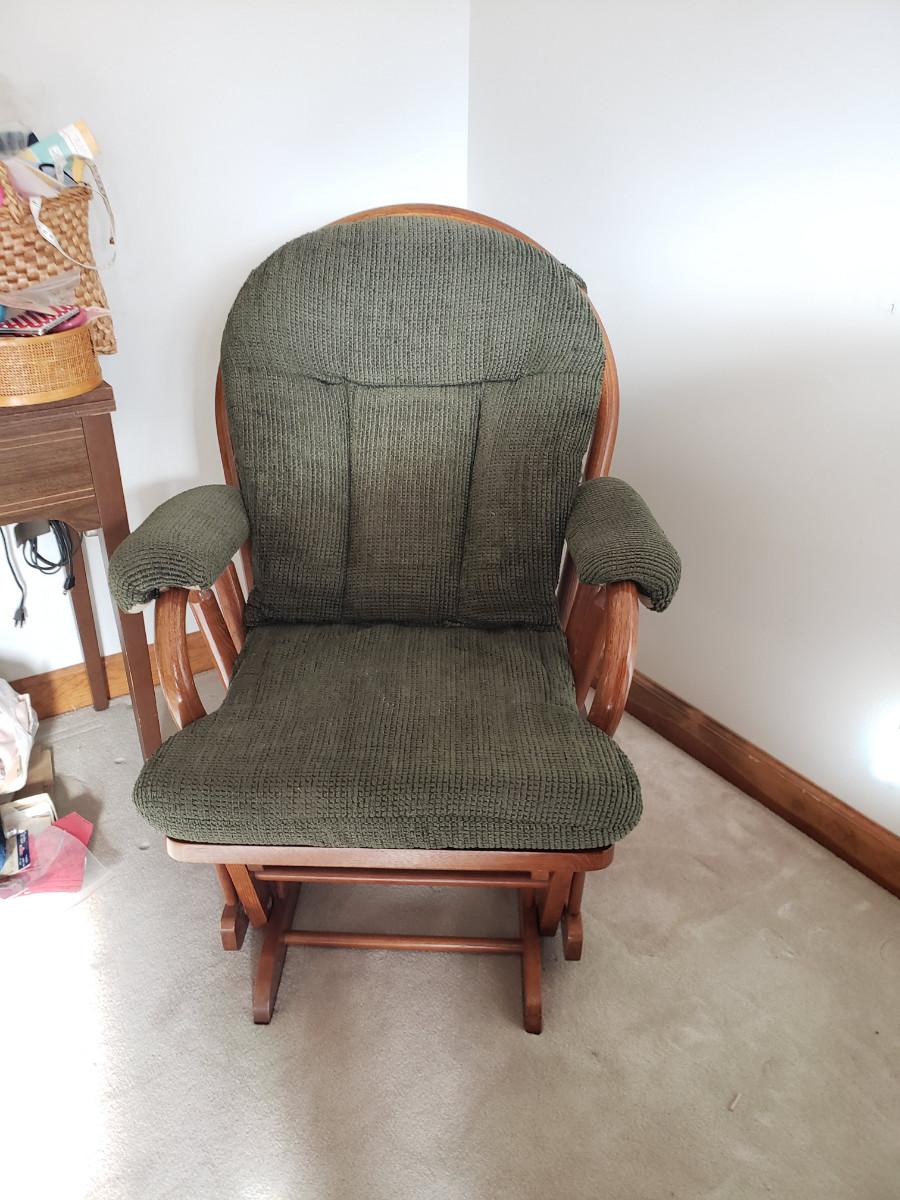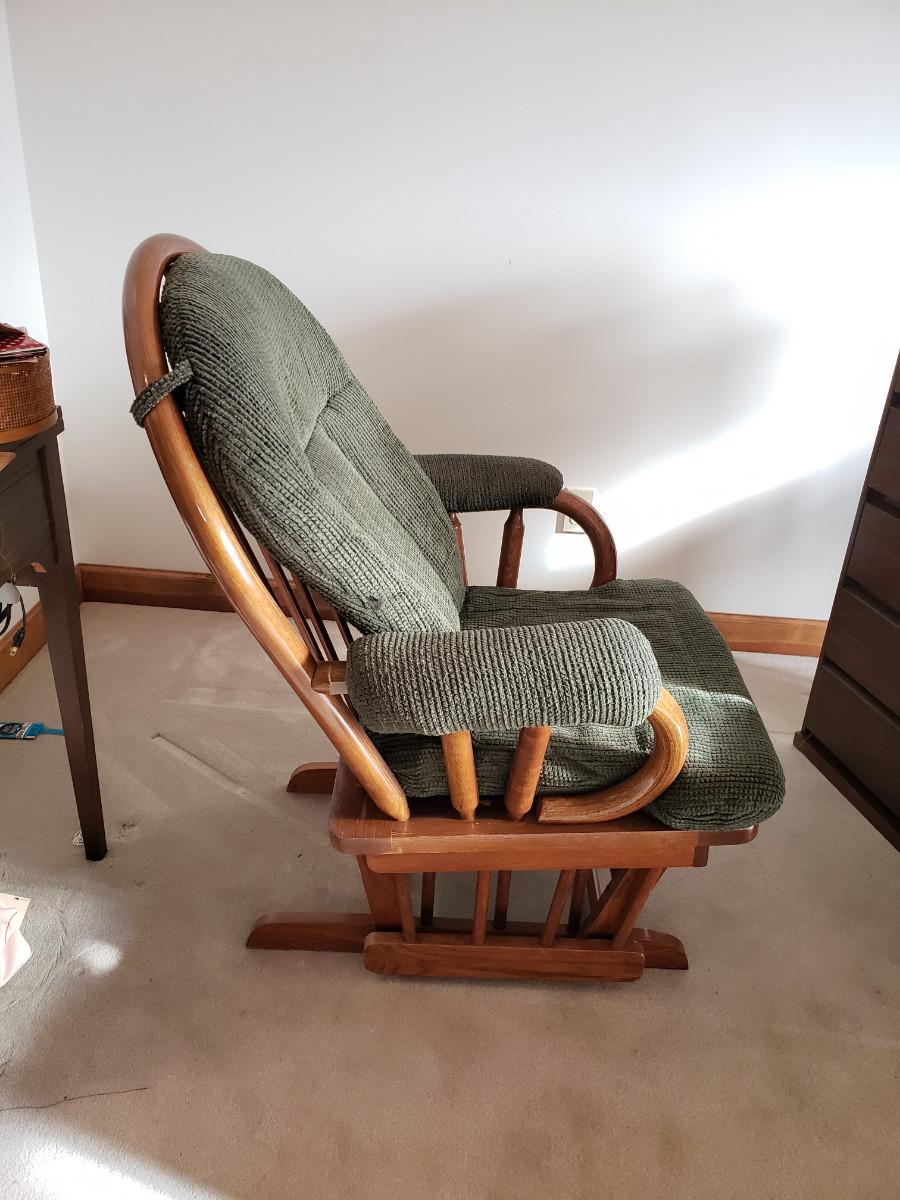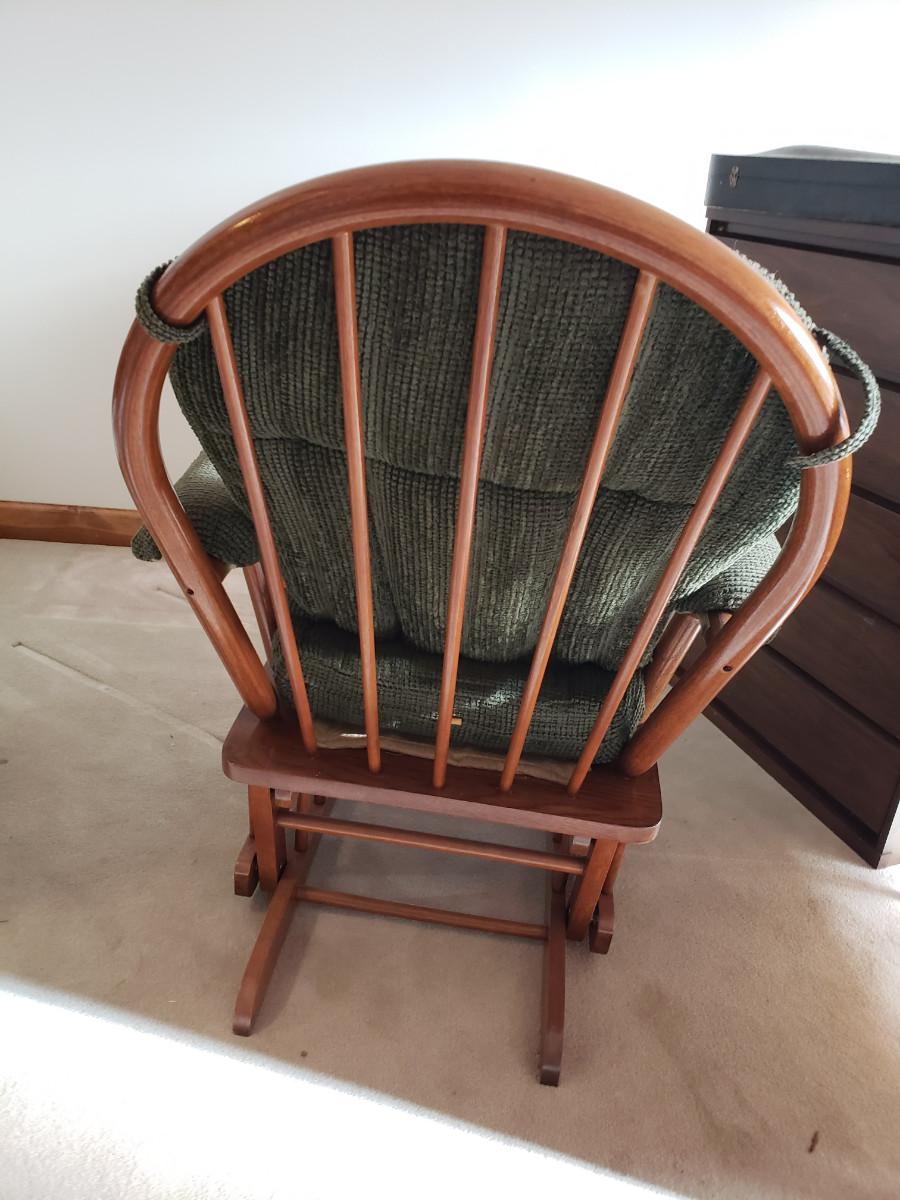 Wooden glider rocker has both back and seat padding. See pictures for more details.