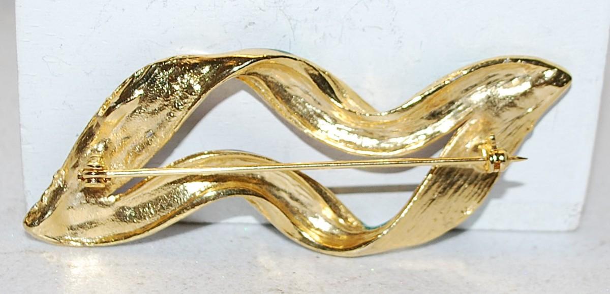Glittery Enamel SWIRL BROOCH (3" x 1") in REDS & GREENS on a Gold Tone Setting