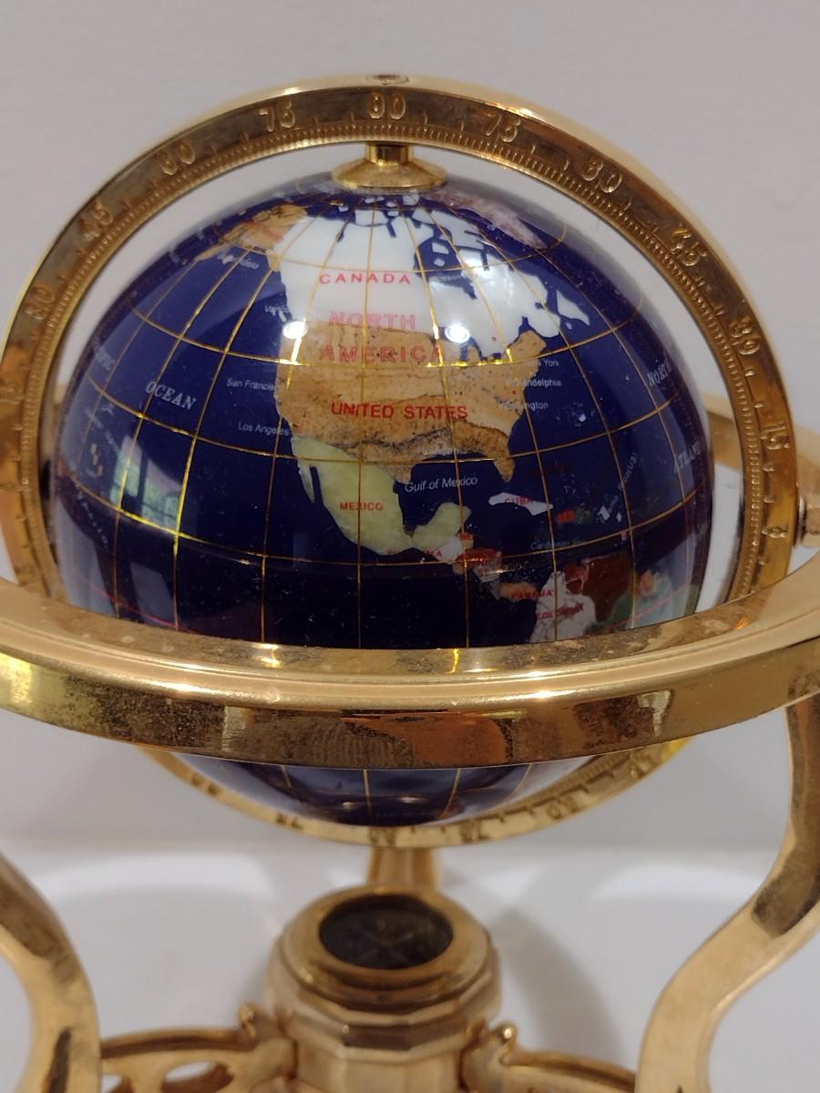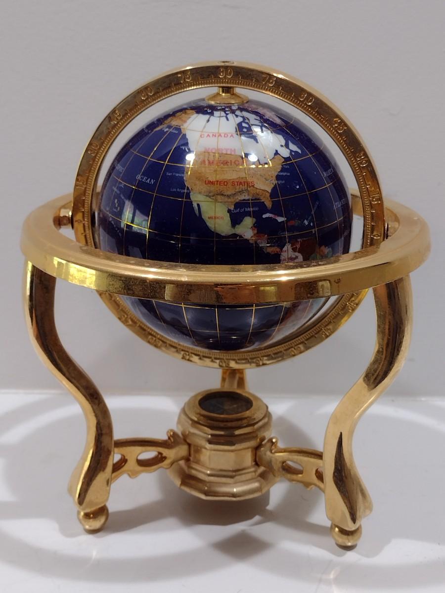 Metal Frame Brass Finish Desk Globe will need to be cleaned as shown