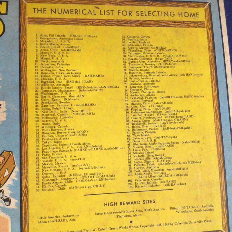 This is a vintage Globe Trotters Game Board from 1930. It is in very good condition for it's age and use. Many times the boards got separated from the game because the original game boxes were too small to hold the board. If you need a game board to complete your game or just want one to display or repurpose - here it is!