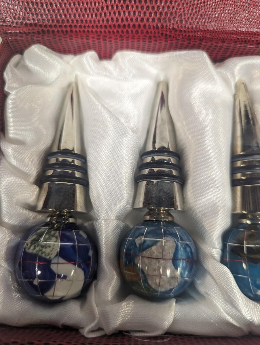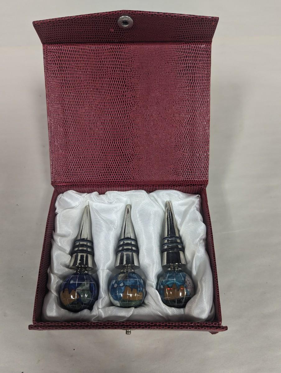 Set of Three Globe Finial Wine Stoppers