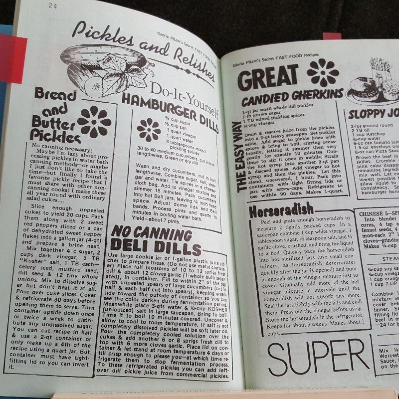 This auction lot is for a copy of Gloria Pitzer's Secret Fast Food Recipes. Dated September 1988 and in its 10th printing. This 120 page, paperback, self-published volume is another of those much sought after works. It is chocked full of famous name food recipes recreated in Gloria's own special style. The red tabs in the photos are marking just a few recipes that we tried and so delish. Garner this gem and we don't think you will regret the purchase. The book is used and out-of-print with some discoloration on the spine - but in very good and useable condition.