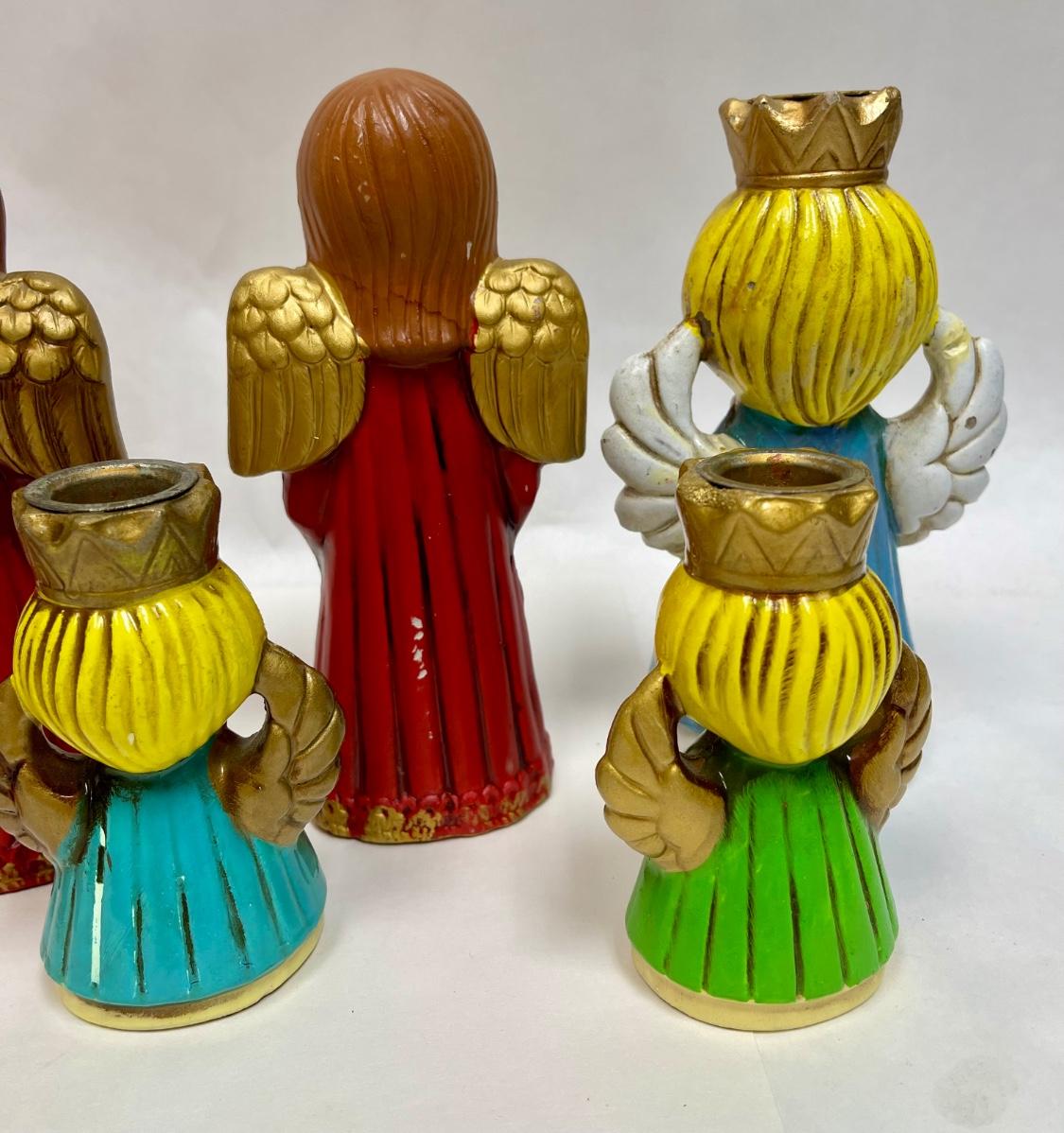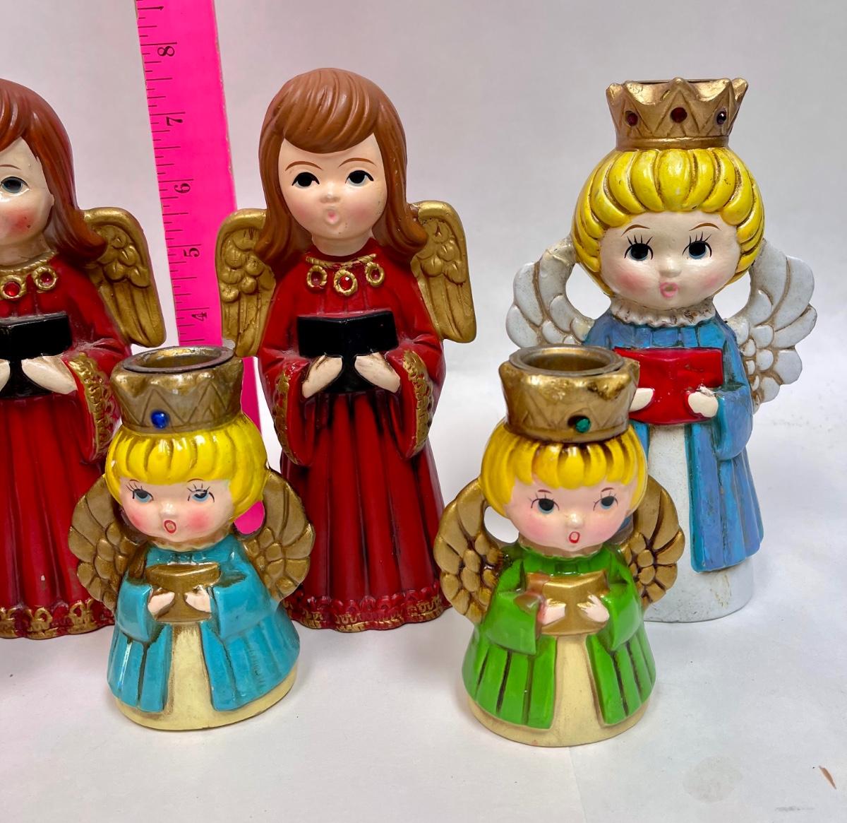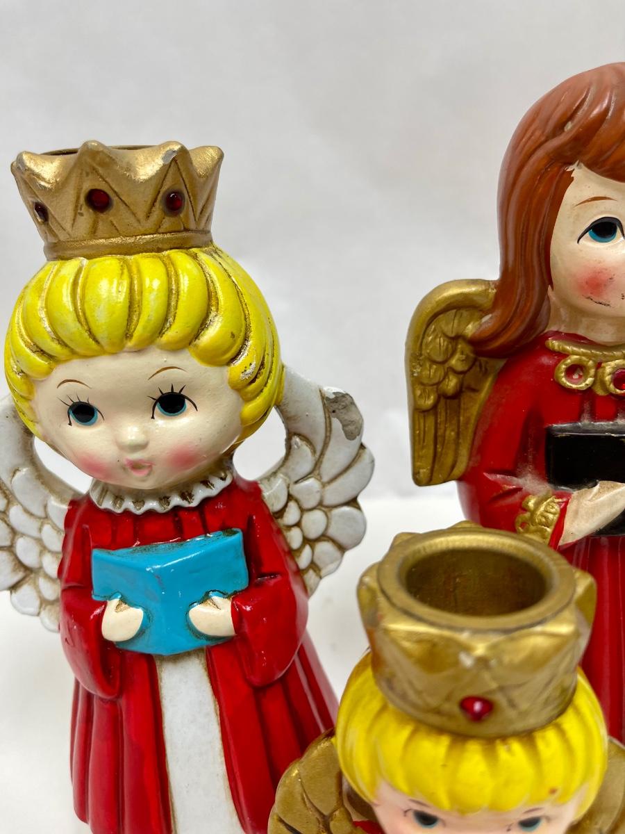 Vintage Homco & Ardco Chalkware Christmas Angel Candle Holders