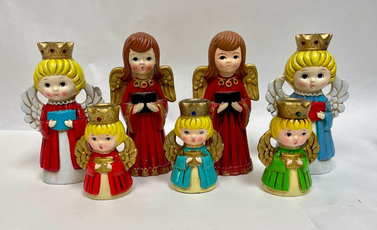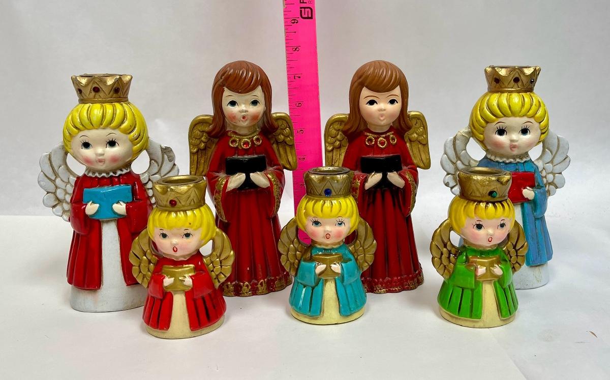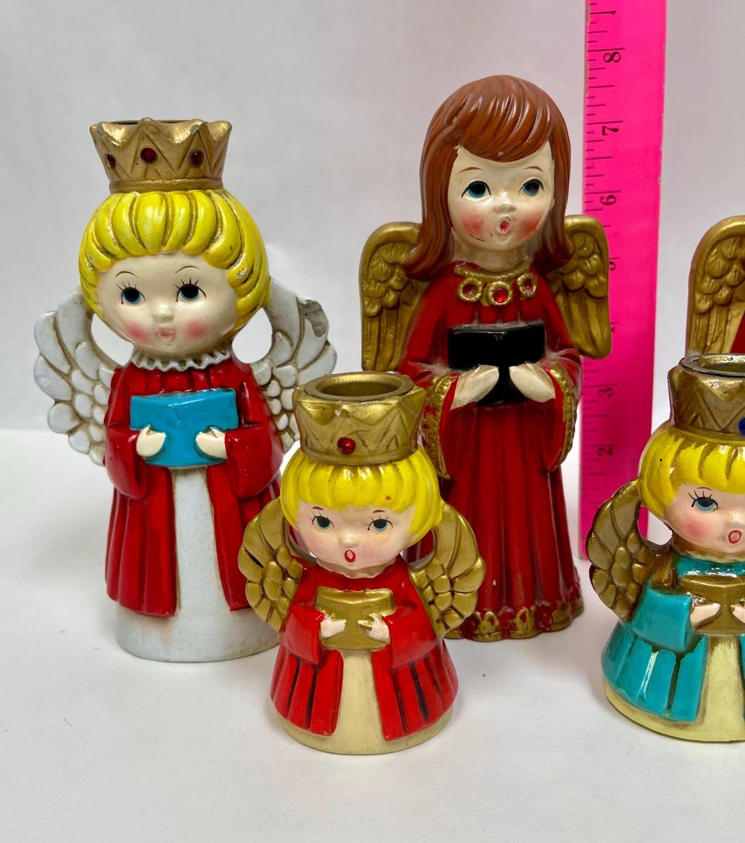 Vintage Homco & Ardco Chalkware Christmas Angel Candle Holders