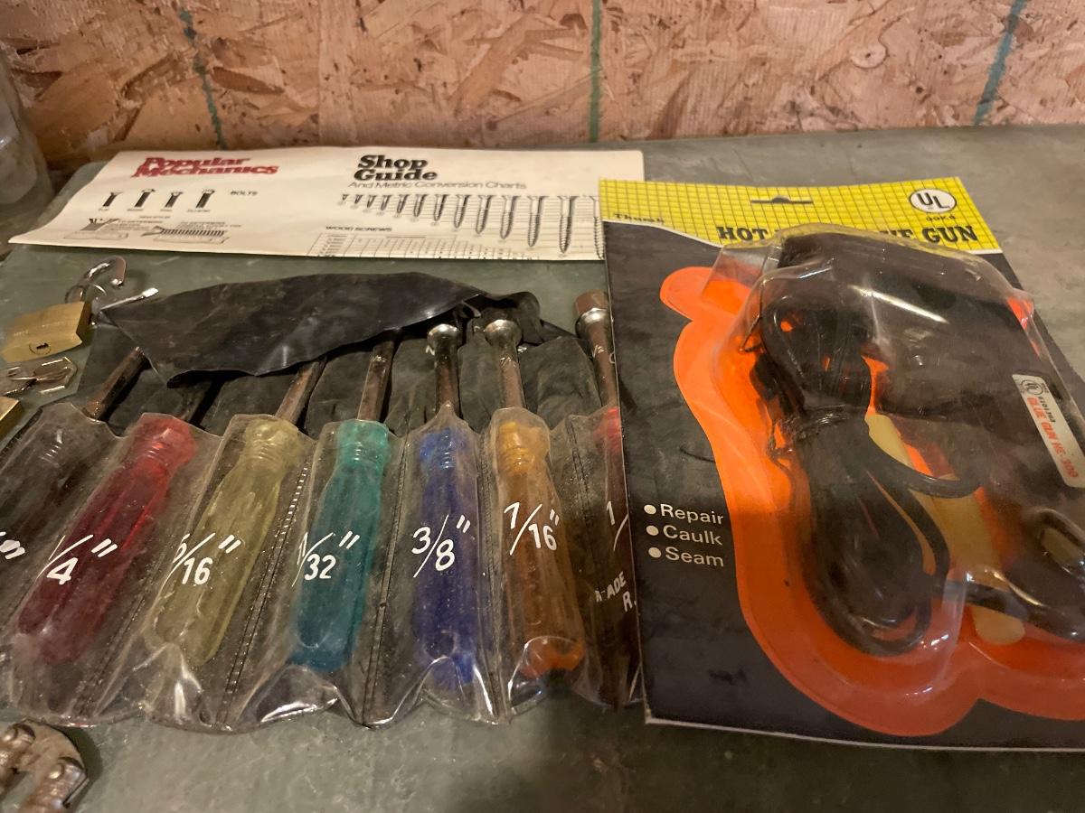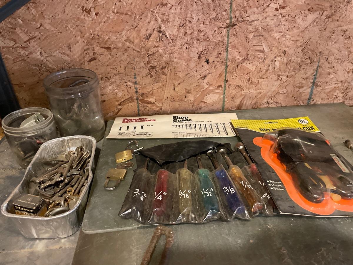 Glue gun, tools and keys